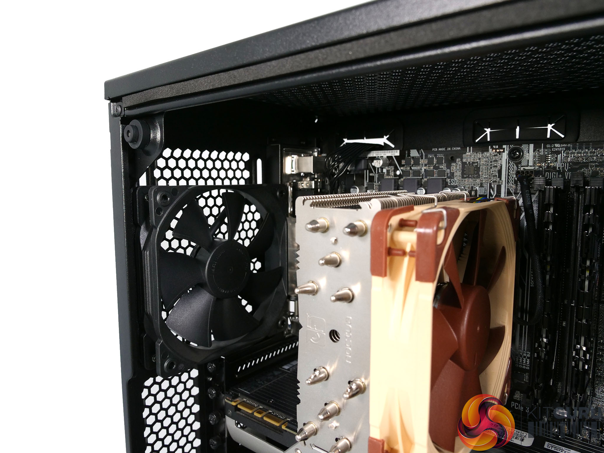 We chose to use a Noctua air cooler on the AMD Ryzen 7 CPU to ensure there was the maximum amount of space available for the Asus Vega64 graphics card. This meant we could retain the two stock fans and didn’t have to make any changes to the internal layout of the case. If you decide to install a liquid cooler in the Meshify C you might install it in the roof but are more likely to install it at the front of the case.