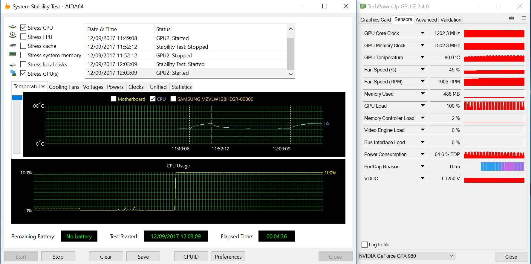 For stress testing we use AIDA64 to create the maximum amount of load our CPU and GPU are ever likely to see.