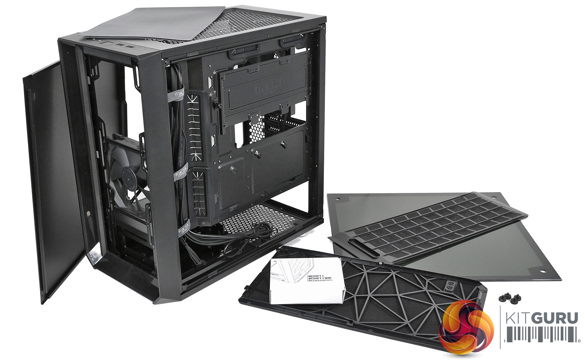 Building a test system in the Meshify C Mini reminded us of the minor trials and tribulations we faced with the regular Meshify C. Removing the two side panels is quick and simple however the mesh front panel that gives the case its name is more tricky to remove as you have to find a hidden trigger and then the panel pops free.