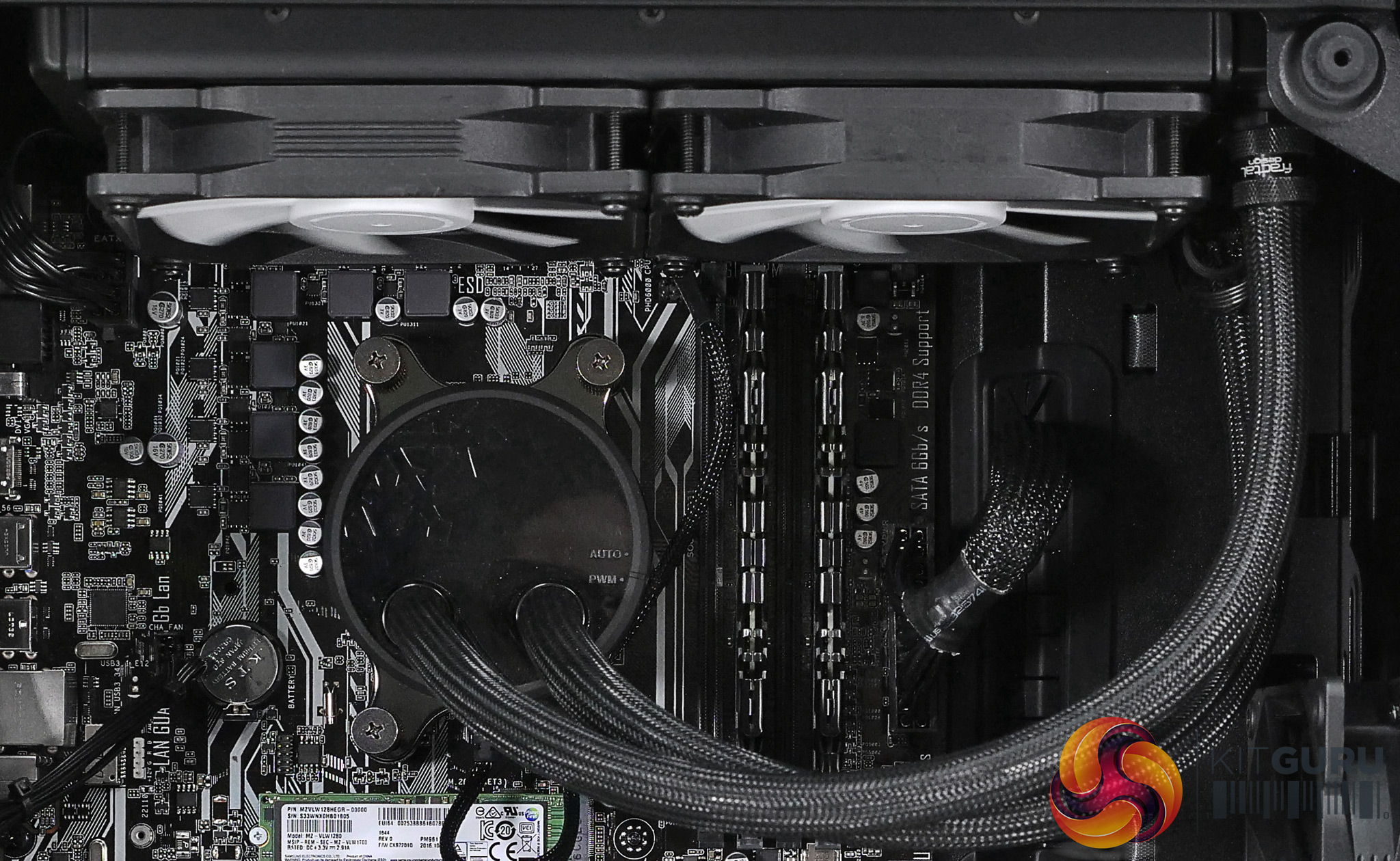 We instead chose to install a 240mm Fractal Design Celsius S24 cooler in the roof of the case while retaining the two supplied Fractal Design X2 GP-12 fans. This presented an unexpected problem as the Asus Prime B350M-A we were using only has a single chassis fan header so we left the front fan disconnected. By their very nature Micro-ATX motherboards are smaller than ATX and as a result they often miss out on headers and connectors. In this instance we were short of fan connectors.
