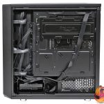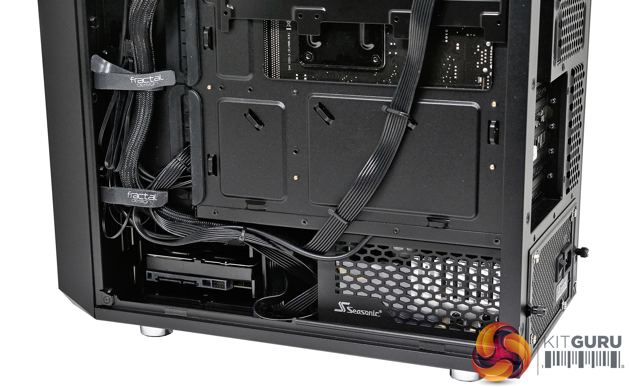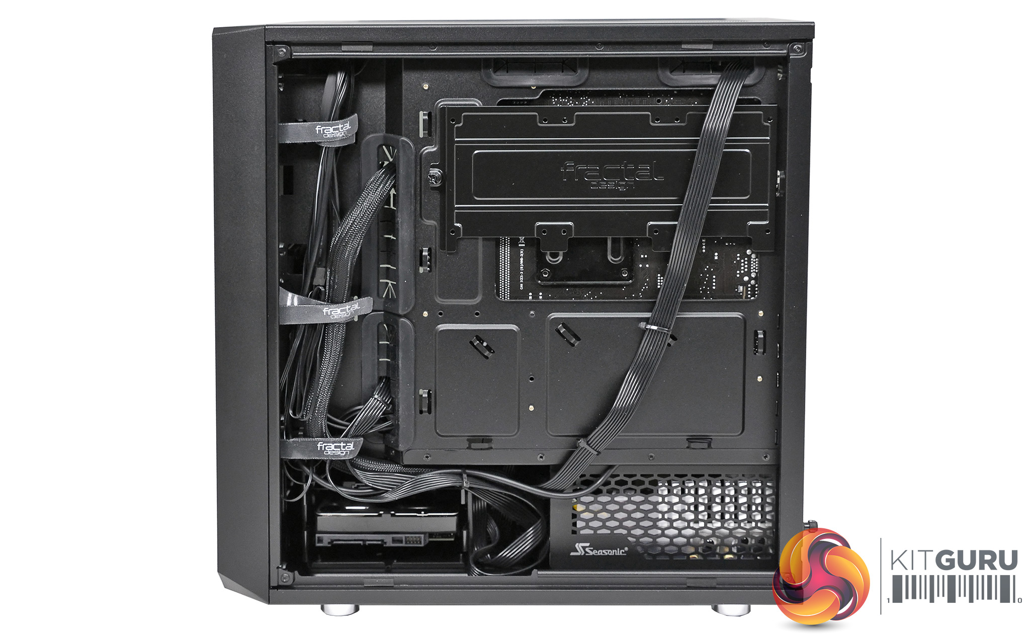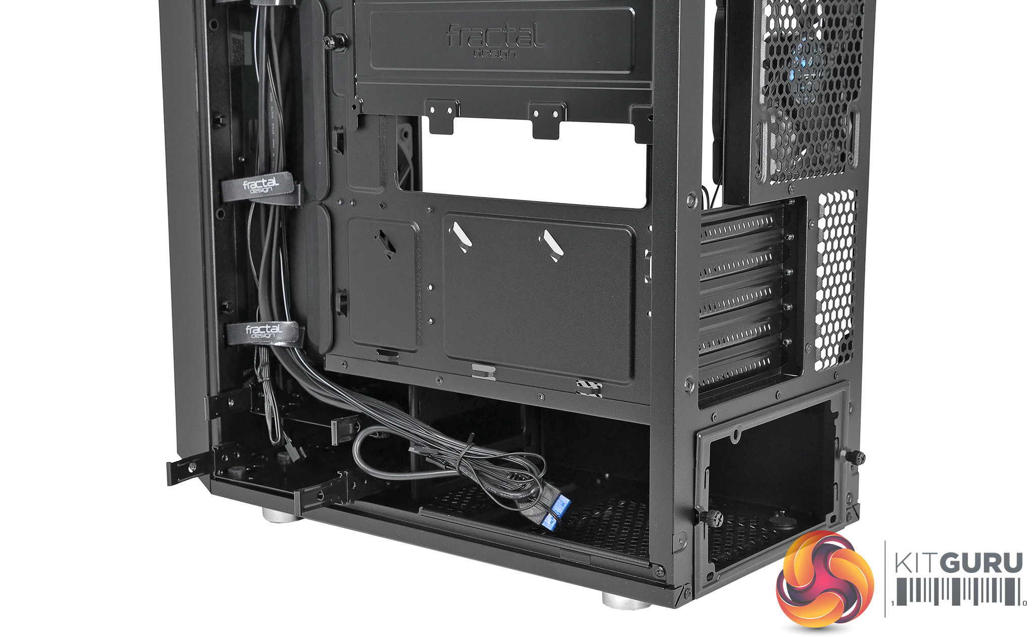 Fractal Design includes a deep channel for cable management that has three ‘hook-and-loop' straps to keep the cables in place. There are two enormous holes for passing cables into the main compartment through grommets that look good and work well. Fractal Design has not seen fit to include another hole and grommet in the power supply cover that would allow you to feed the graphics card power cables upwards. That might be an idea for the next version of this case.