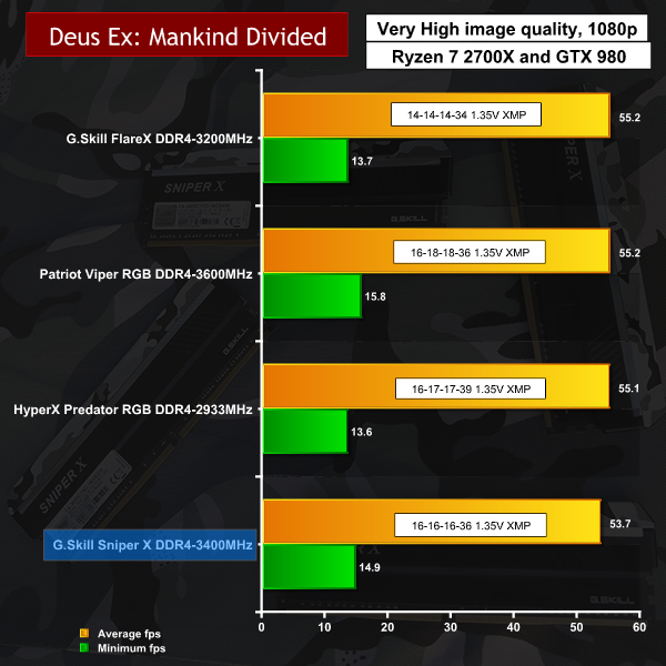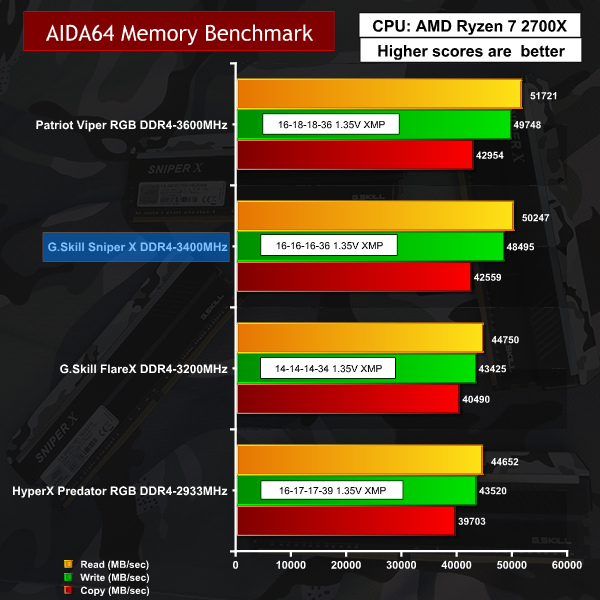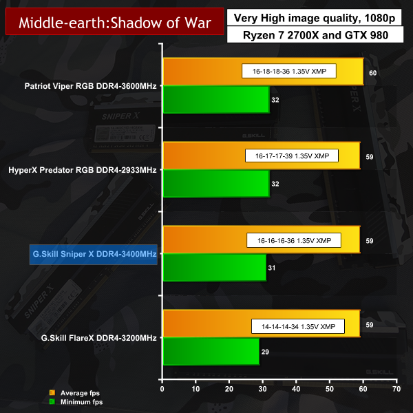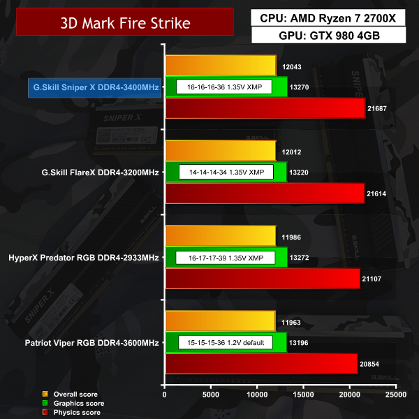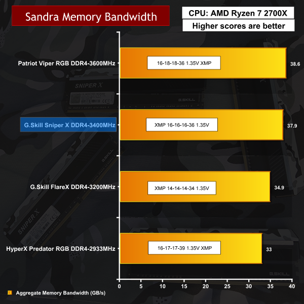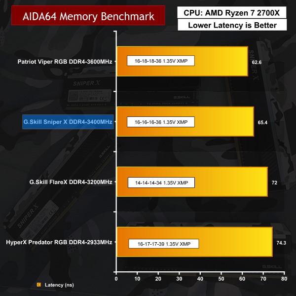There is no doubt the G.Skill Sniper X 3400MHz performs well on an AMD platform, however the speed difference between the 3400MHz Sniper X and 3200MHz Flare X is very small. If you see a difference of two percent in any single test you are doing well, which is only a fraction of the six percent difference in memory clock speed.