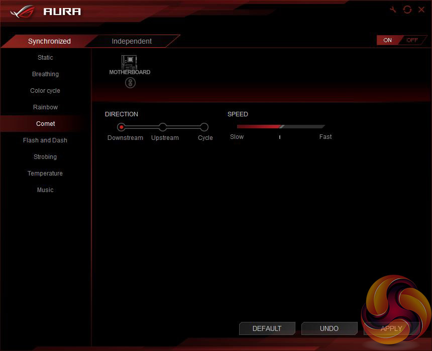 When you use a fan header for power you will find the direct slider control has switch positions for four breathing modes (red, green, blue and RGB). The switches are not precise and have mid-positions that inadvertently turn the LEDS off.