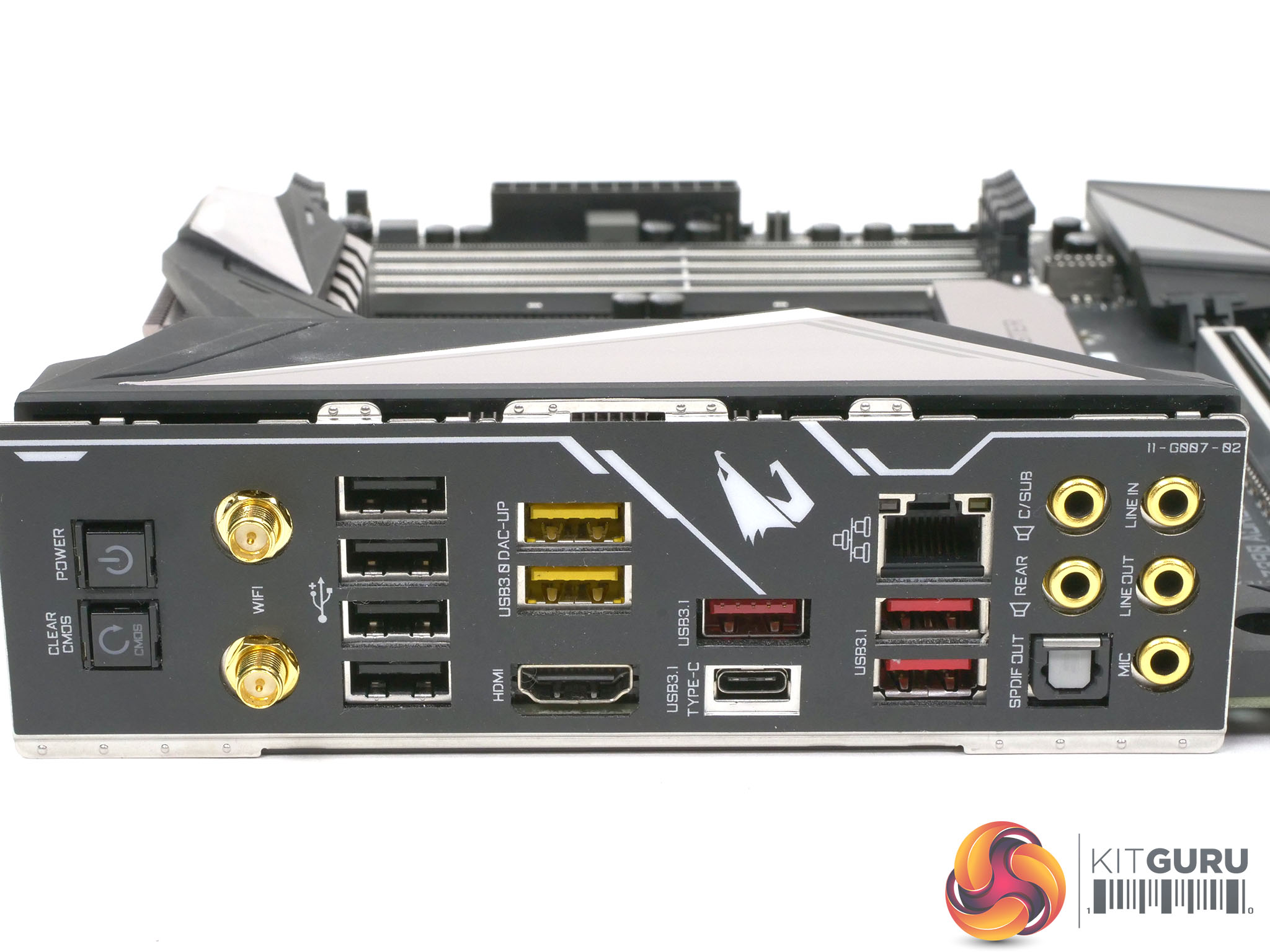 The rear I/O panel is loaded with USB ports, audio connectors, Wi-Fi antennae as well as those annoying Micro buttons that Gigabyte has taken to placing on the I/O, when we would much prefer to have them on the board itself. We really cannot see the point of four PCIe graphics slots and would much rather the space was used for other hardware.