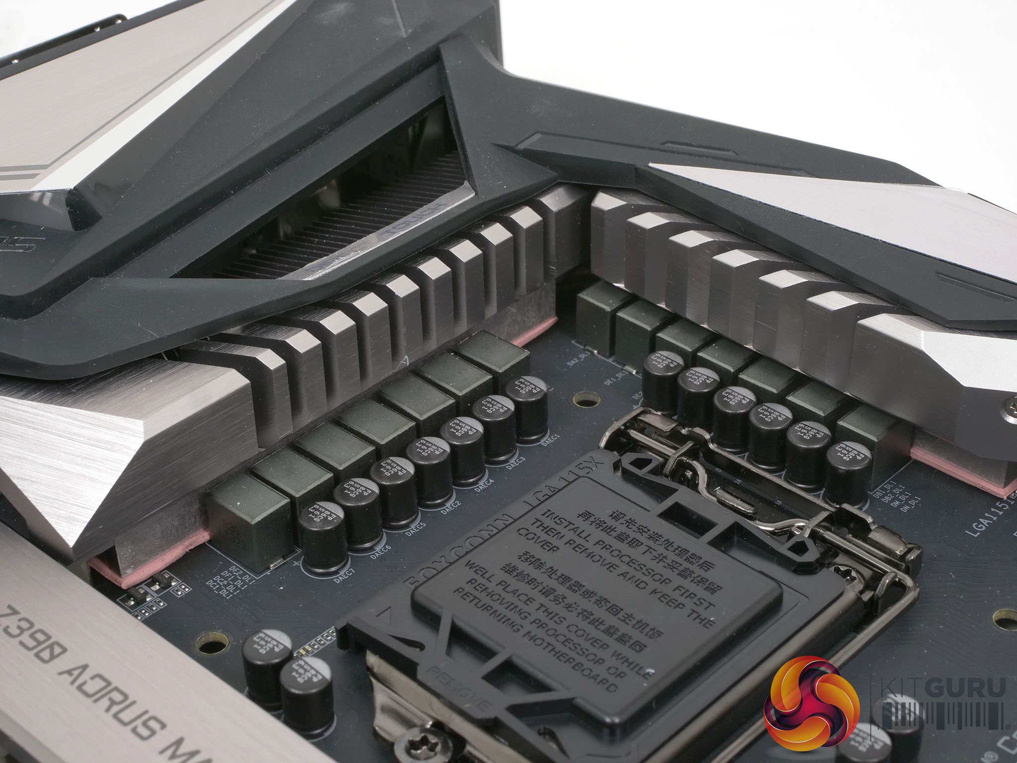 The advantage of using this level of battleship engineering is that current output can reduced towards 15A per phase where you get maximum efficiency of 92 percent, which still provides 180A which is 240W at 1.35Vcore. During our testing we measured a CPU power draw over 200W which means that while our overclocked CPU was working at the limit we could see the Gigabyte Z390 Aorus Master was barely ticking over.