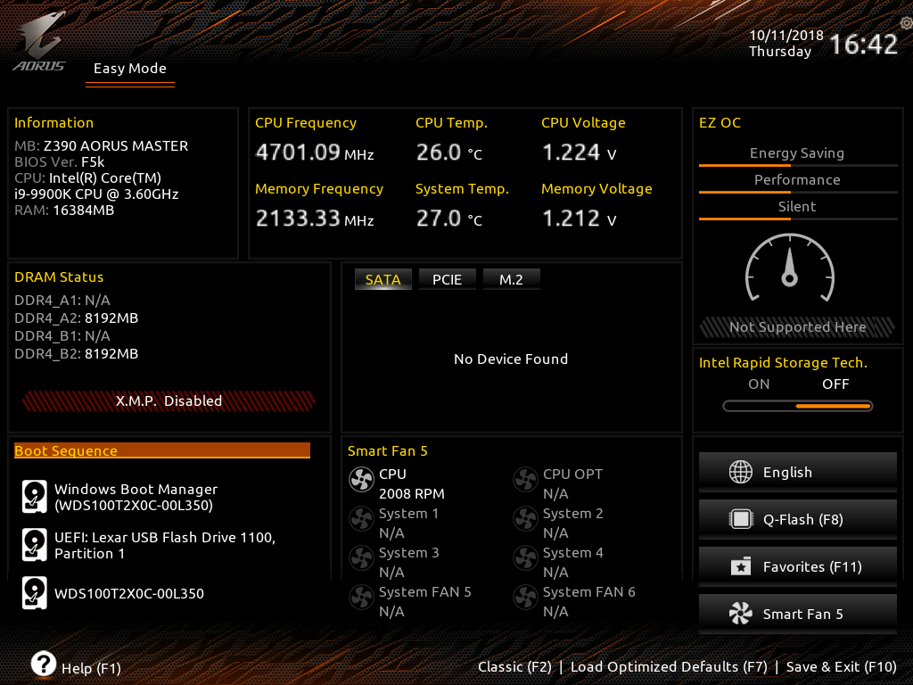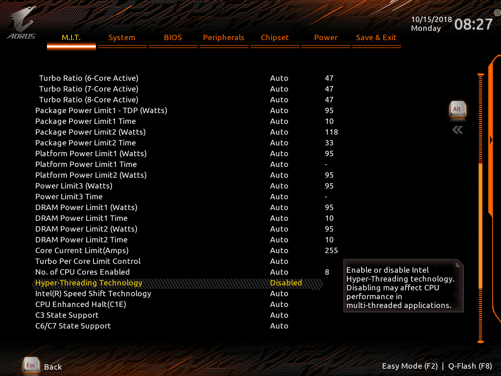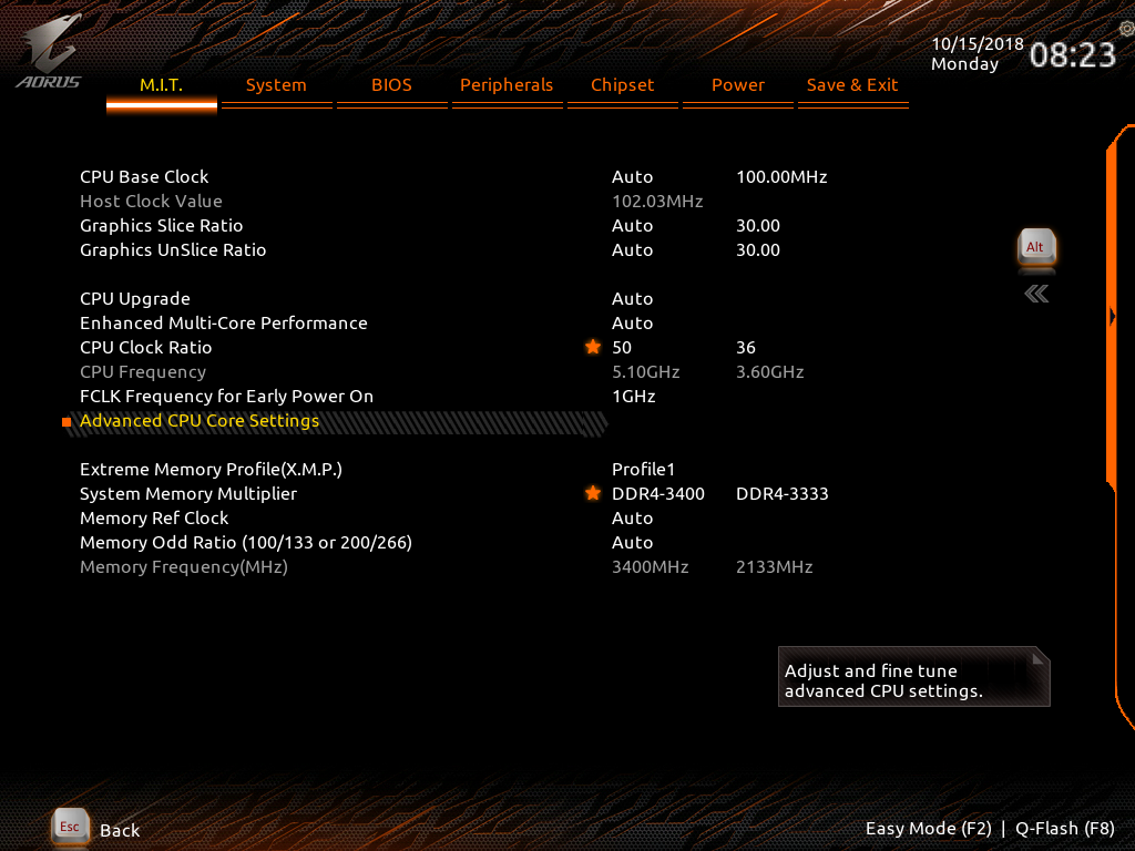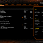 Working in the BIOS set-up screen is a familiar process as Gigabyte has carried over the features we have seen in previous enthusiast motherboards.