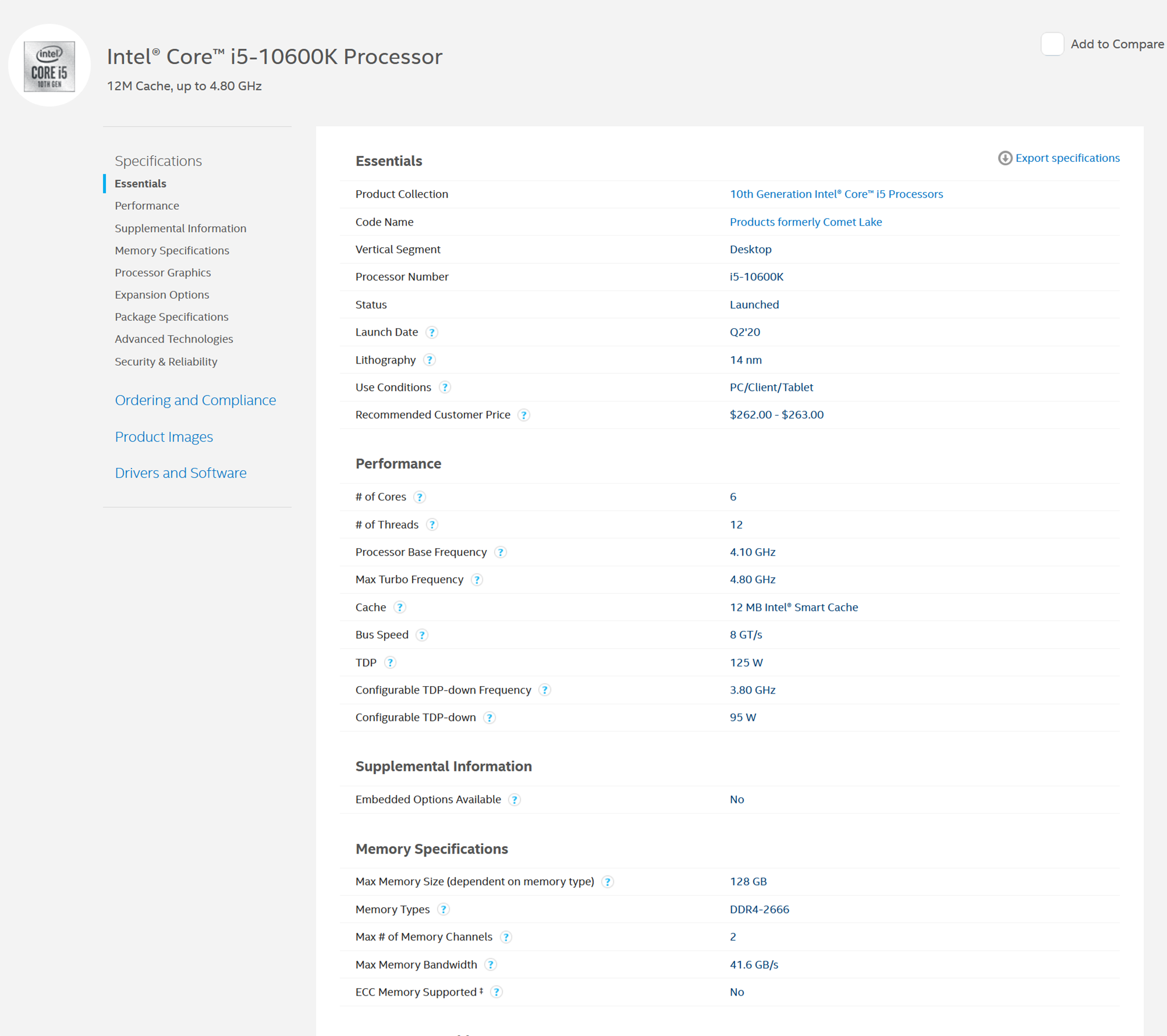 The snag is that if we forget about the model name of Core i5-10600K and instead look at the specification it quickly becomes clear this CPU is very similar to the aged Core i7-8700K.