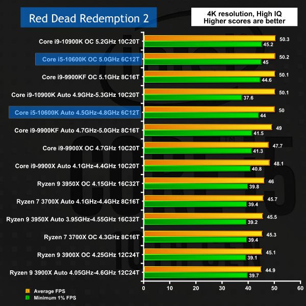 Well that's more like it. When you throw some actual games at Core i5-10600K it performs perfectly well both at 4K and 1080p, and in some games it seems to perform far better than you might expect.
