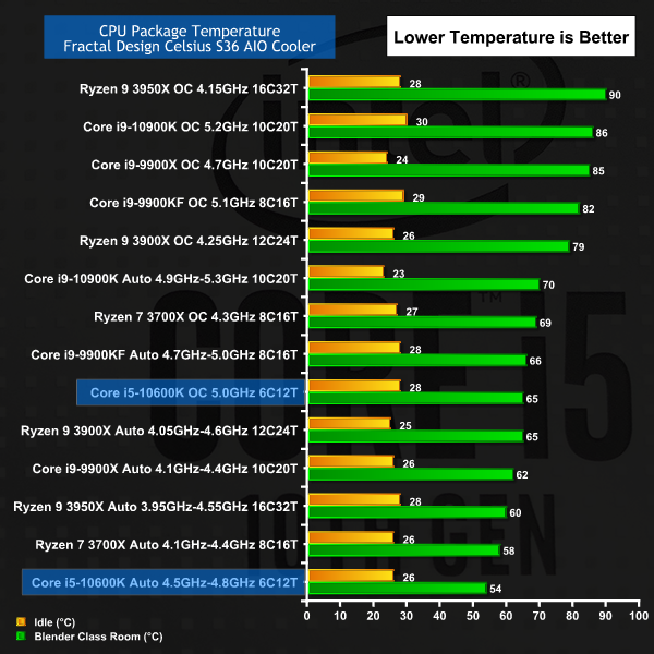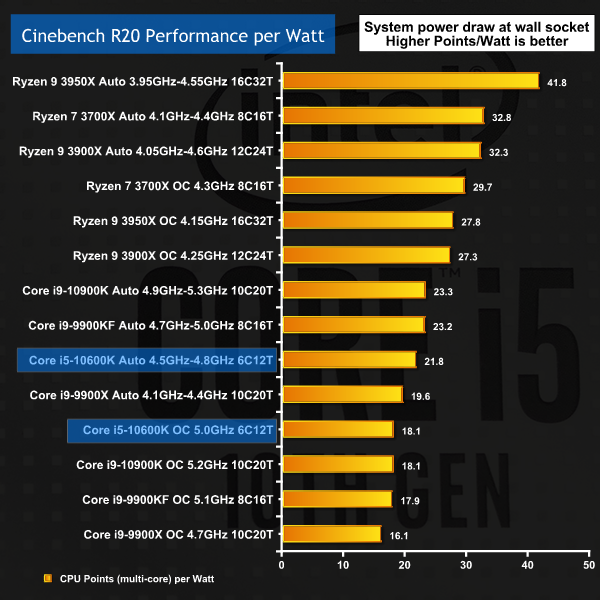 There is no particular mystery here; Core i5-10600K is not particularly efficient however its low core count and modest clock speed means that it does not require much power, and as a result it runs nice and cool. Well perhaps there is a mystery as we have no idea why Intel rated this CPU at 125W TDP as it remains safely inside that limit.