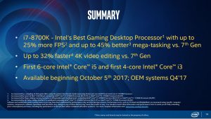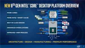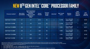 The feeds and speeds for the new CPUs tell you pretty much everything you need to know, if you compare Coffee Lake to Kaby Lake or Skylake. Core i7-8700K has 50 percent extra cores compared to Core i7-7700K yet the TDP has barely changed from 91W to 95W. You still use dual channel DDR4 memory with a modest nominal increase in speed from 2400MHz to 2666MHz which will be eclipsed as soon as you enable XMP.