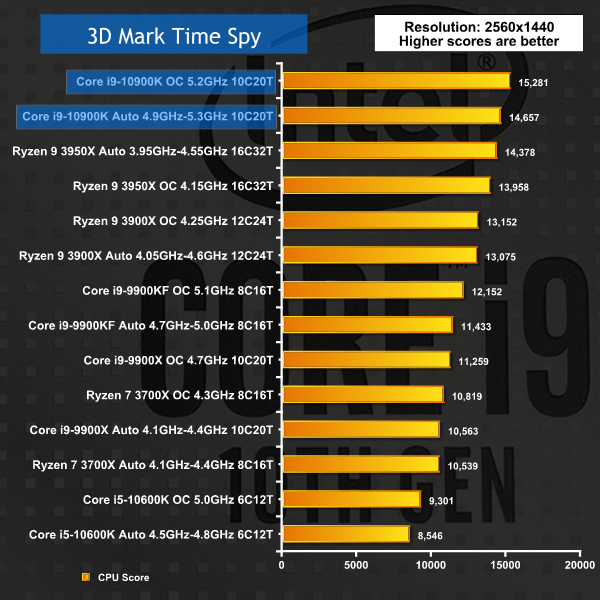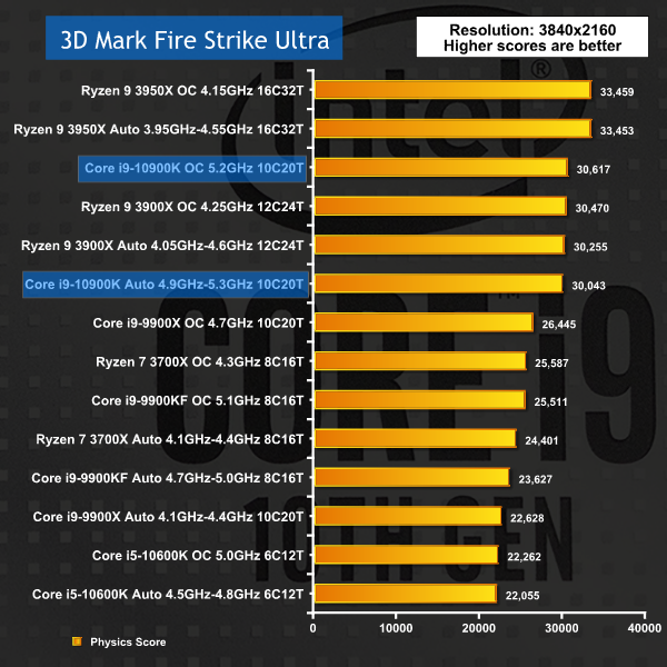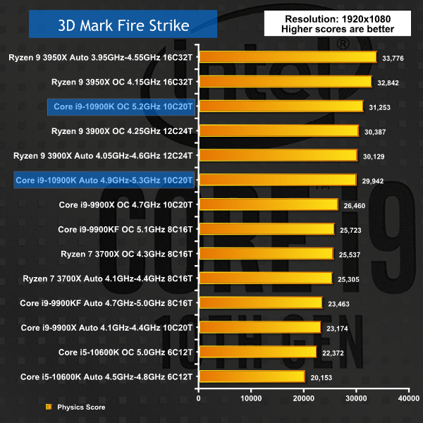 In the Physics and CPU elements of 3D Mark Intel does well. This isn't a surprise as Core i9-9900K did well previously and adding an extra 25 percent cores while increasing clock speed gives an obvious benefit. Nonetheless, let us once again point out that Skylake debuted in 2015. Wow, those designers did a fine job.