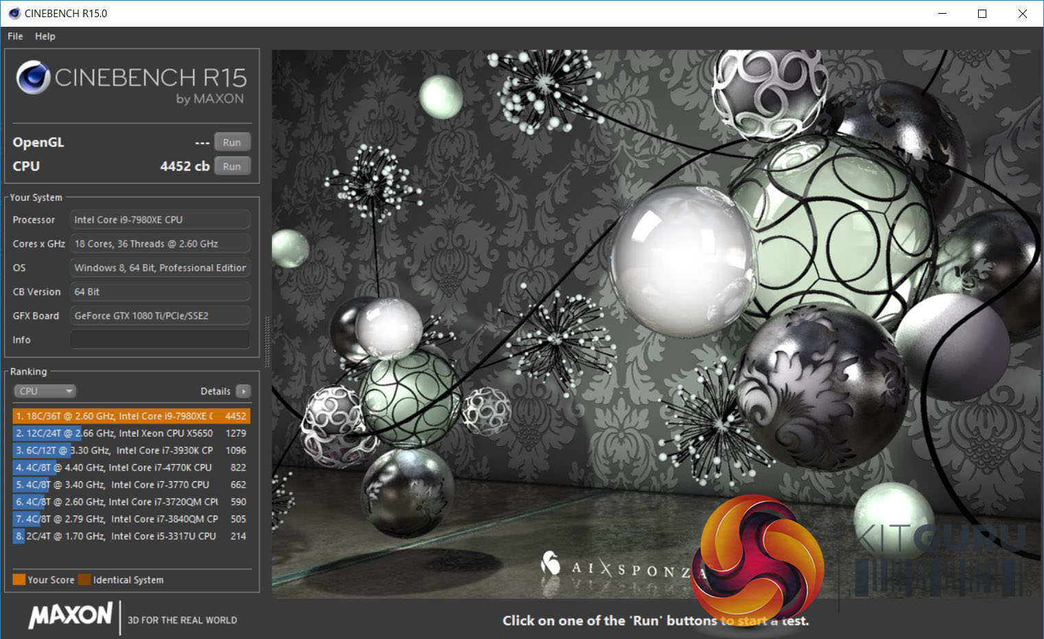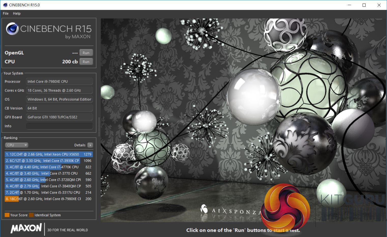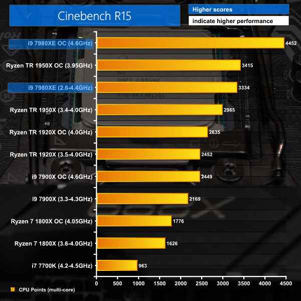 Cinebench R15 with the Core i9 overclocked to 4.6GHz.
