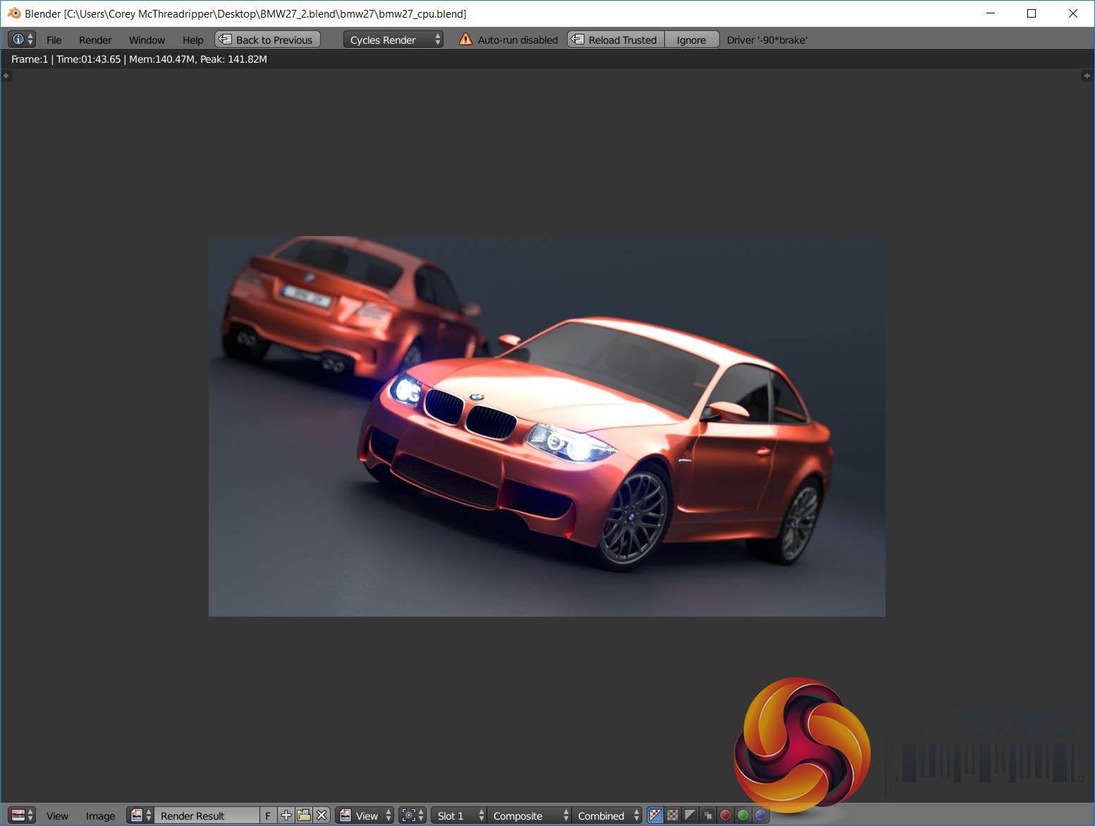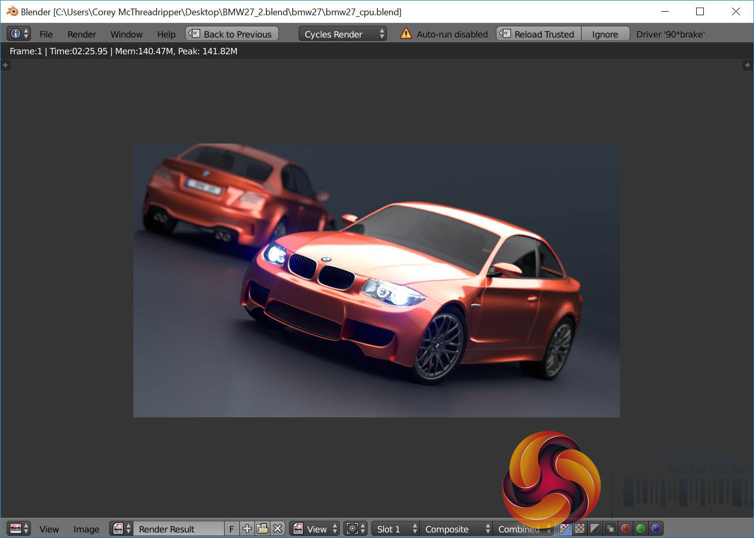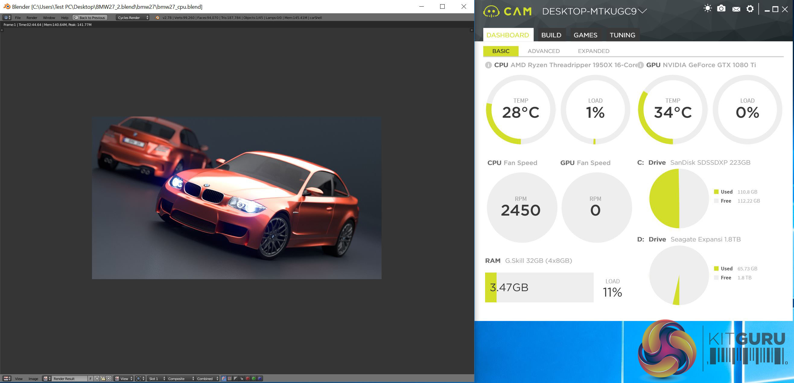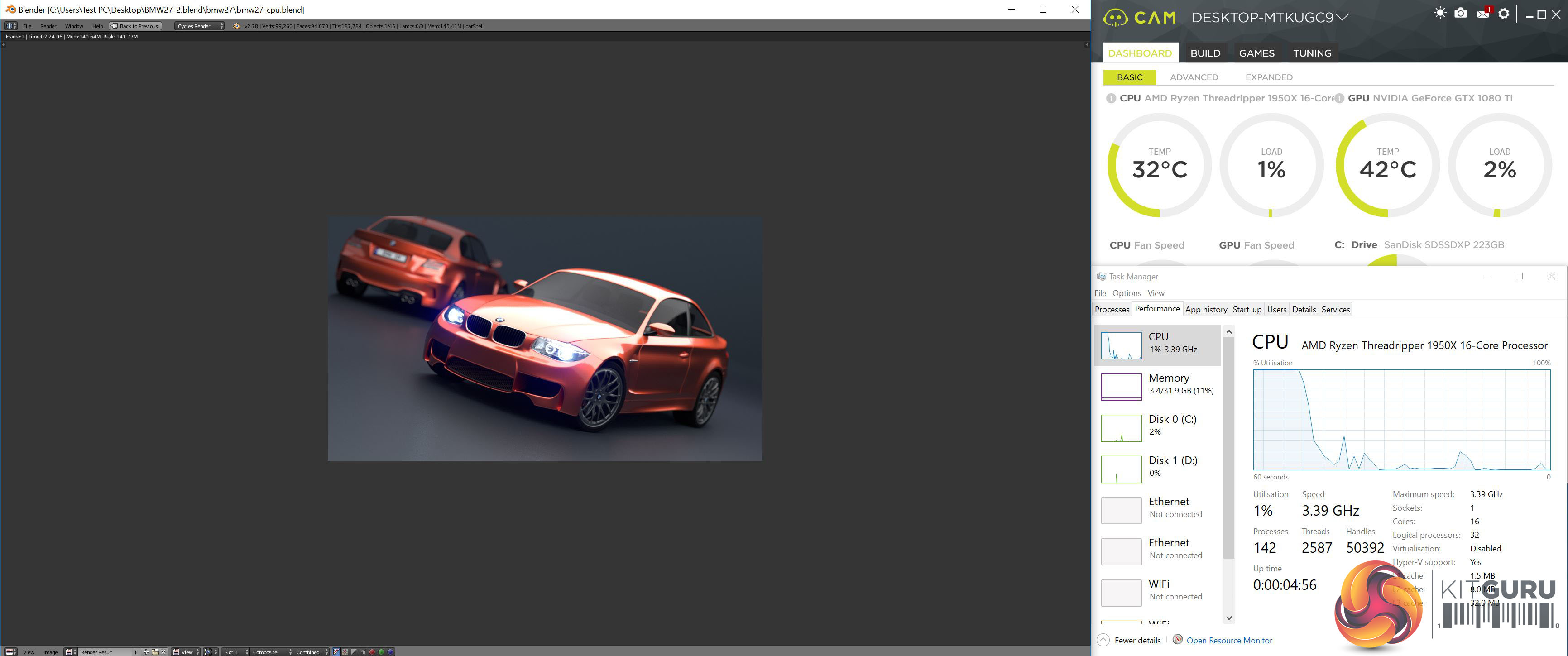 AMD Ryzen Threadripper 1950X running Blender at Stock Clock speeds.