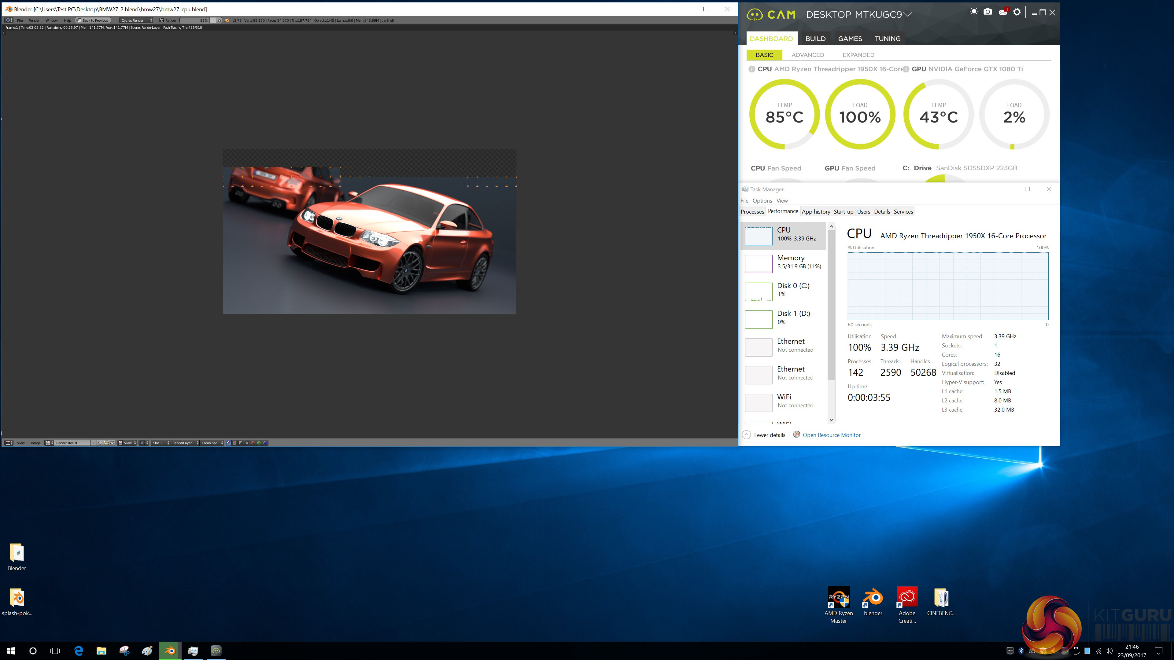 AMD Ryzen Threadripper 1950X running Blender at 4.6GHz.