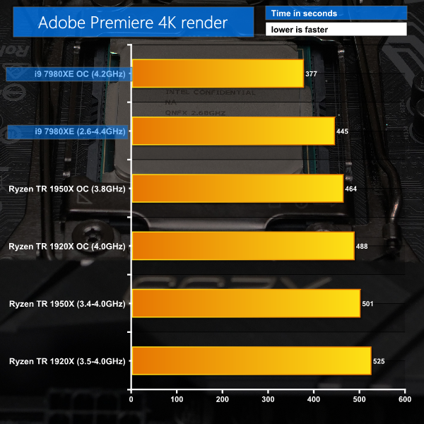 Core i9-7980XE running Premiere at Stock Clock speeds.