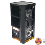 MonsterLabo The First is a PC chassis that is built around the largest heat exchanger we have ever seen inside a computer. Picture the heatsink used in, say, a large be quiet! cooler and then imagine something five times larger and you have a starting point for The First. This enormous heatsink is located in the upper half of the chassis and is connected via heat pipes to a CPU cooler and a GPU cooler, to which you attach your motherboard assembly and graphics card.