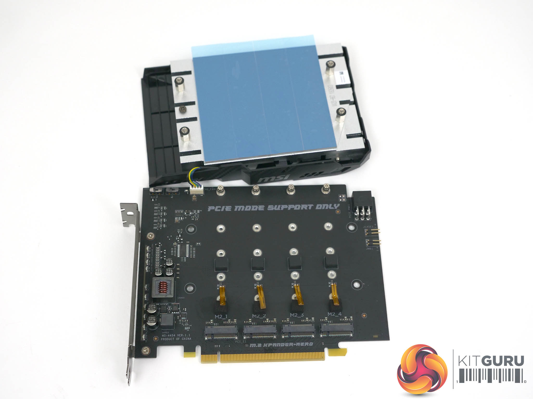 MSI has piled in a bunch of other features including support for up to 128GB of DDR4 memory, 8x SATA3 connectors, 3x M.2 SSDs slots, dual Gigabit Ethernet and Intel 802.11ac 2c2 Wi-Fi. That is a huge amount of storage and connectivity and yet, as you will see in our video, MSI also includes an item called M.2 Xpander-Aero that looks like a graphics card but which actually houses up to four M.2 SSDs in a PCI Express RAID enclosure.