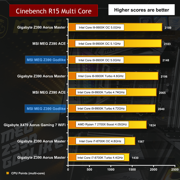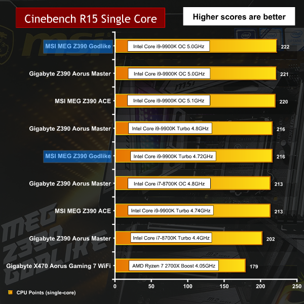 You will get slightly higher performance from the MSI MEG Z390 ACE and Gigabyte Z390 Aorus Master boards on Auto settings however no-one in their right mind would send this sort of money and then run their CPU at stock clock speeds.