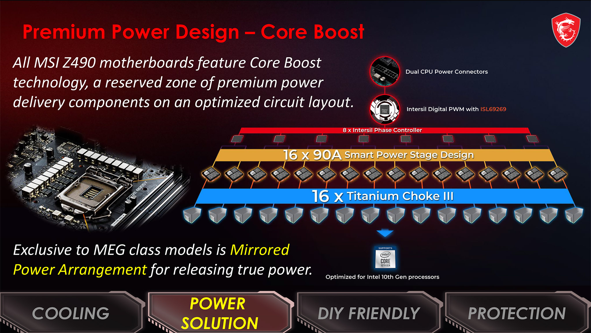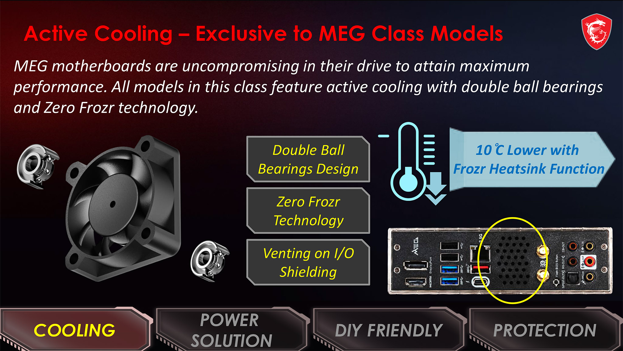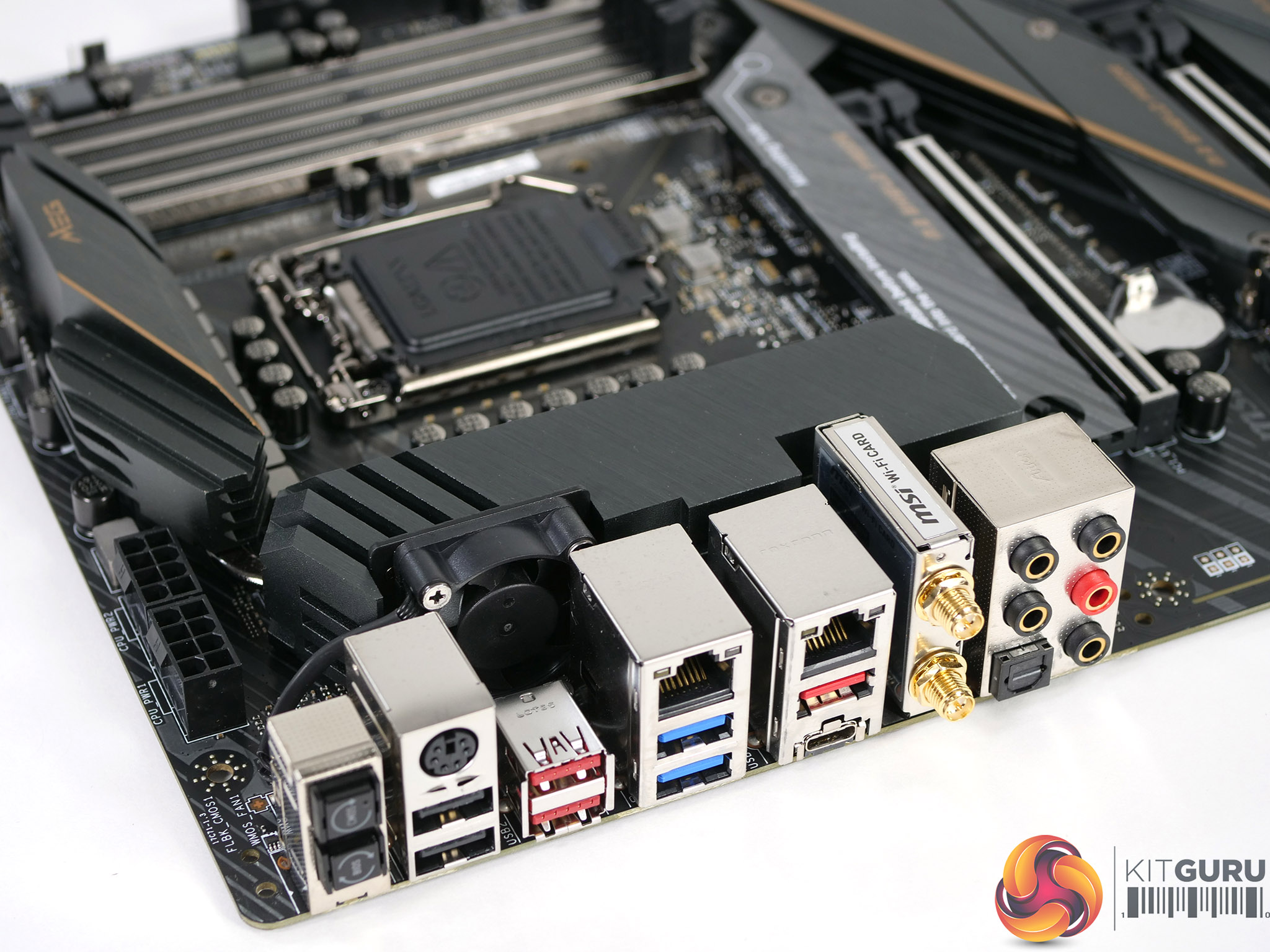16 stages of 90A sounds massive however VRMs of this level are becoming the new normal for Z490 compared to a high end Z390 which might use 12 stages each of 50A or 60A. As you will have seen in our video, it caused us some confusion that MSI includes a 40mm active fan behind the I/O shield that can run up to 12,000rpm to cool the VRMs. If the VRM cooler works correctly we consider a fan would be unnecessary. On the other hand if active cooling is required then we dislike the idea of a tiny fan spinning at a huge rate of knots.
