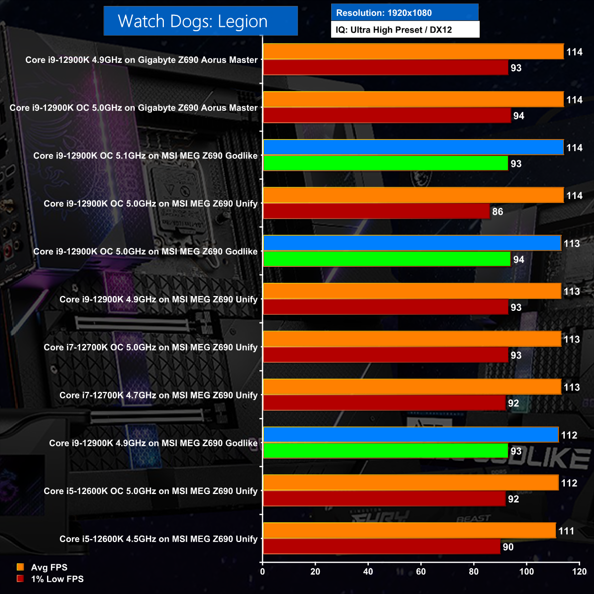 The margins of separation are slight in Watch Dogs: Legion at 1440p however the fact is that the hugely expensive Godlike is not at the top of the chart.