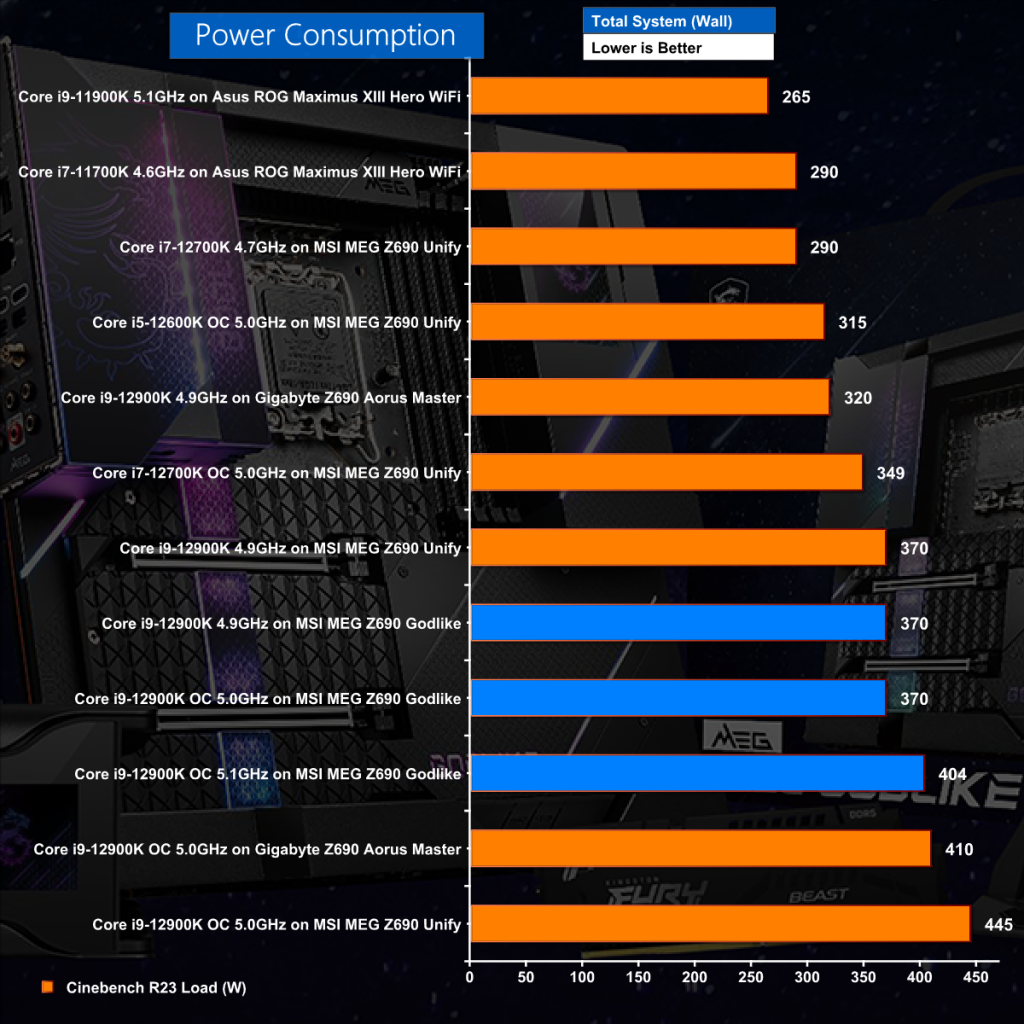 The figures for power consumption tell us that MSI is taking a measured approach with the Godlike and the voltage settings are less aggressive than their Z690 Unify.