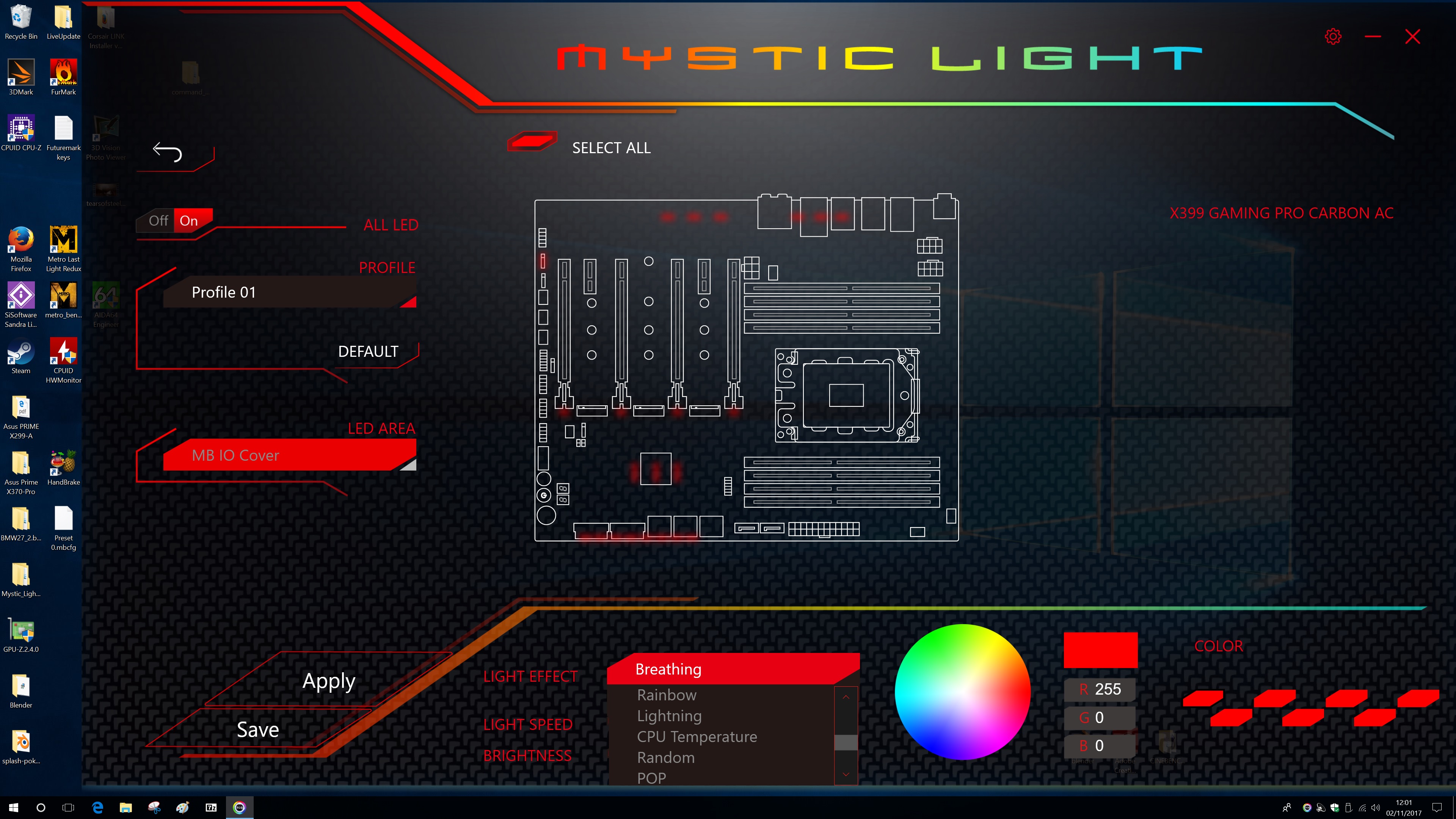 Mystic Light: 16.8 million colours / 17 effects controlled in one click.