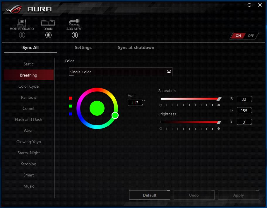 Patriot’s own software works very nicely, although the interface is simply enormous. Going to the other extreme we have the tiny interface used by Asus Aura, which is the software that is intended for use with our chosen Asus ROG Crosshair VII Hero Wi-Fi motherboard. Aura has recently been updated to version 1.06.29 that supports Patriot and HyperX RGB memory and it worked absolutely flawlessly.