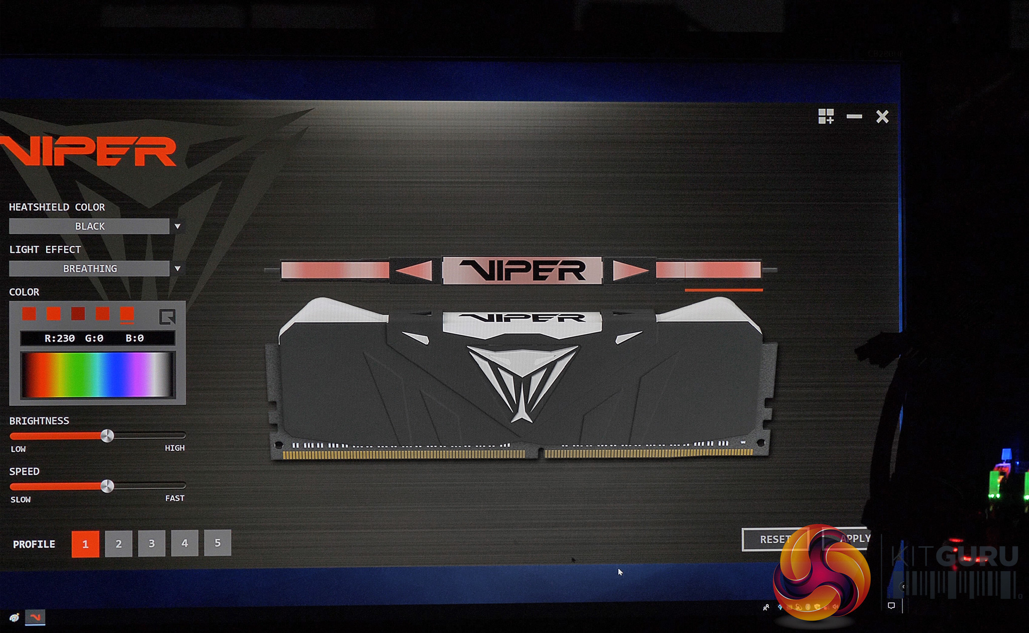 Patriot was pretty much obliged to deliver this range of Viper RGB memory as every memory manufacturer needs to offer RGB to their customers. What Patriot has done is to go the extra distance by providing their own control software, as well as full compatibility with the four RGB software systems used by ASRock, Asus, Gigabyte and MSI. This control is carried out through SPD so there are no external cables, or any other mess or clutter. Plug in the memory, use your preferred software and you’ll be running in no time at all.