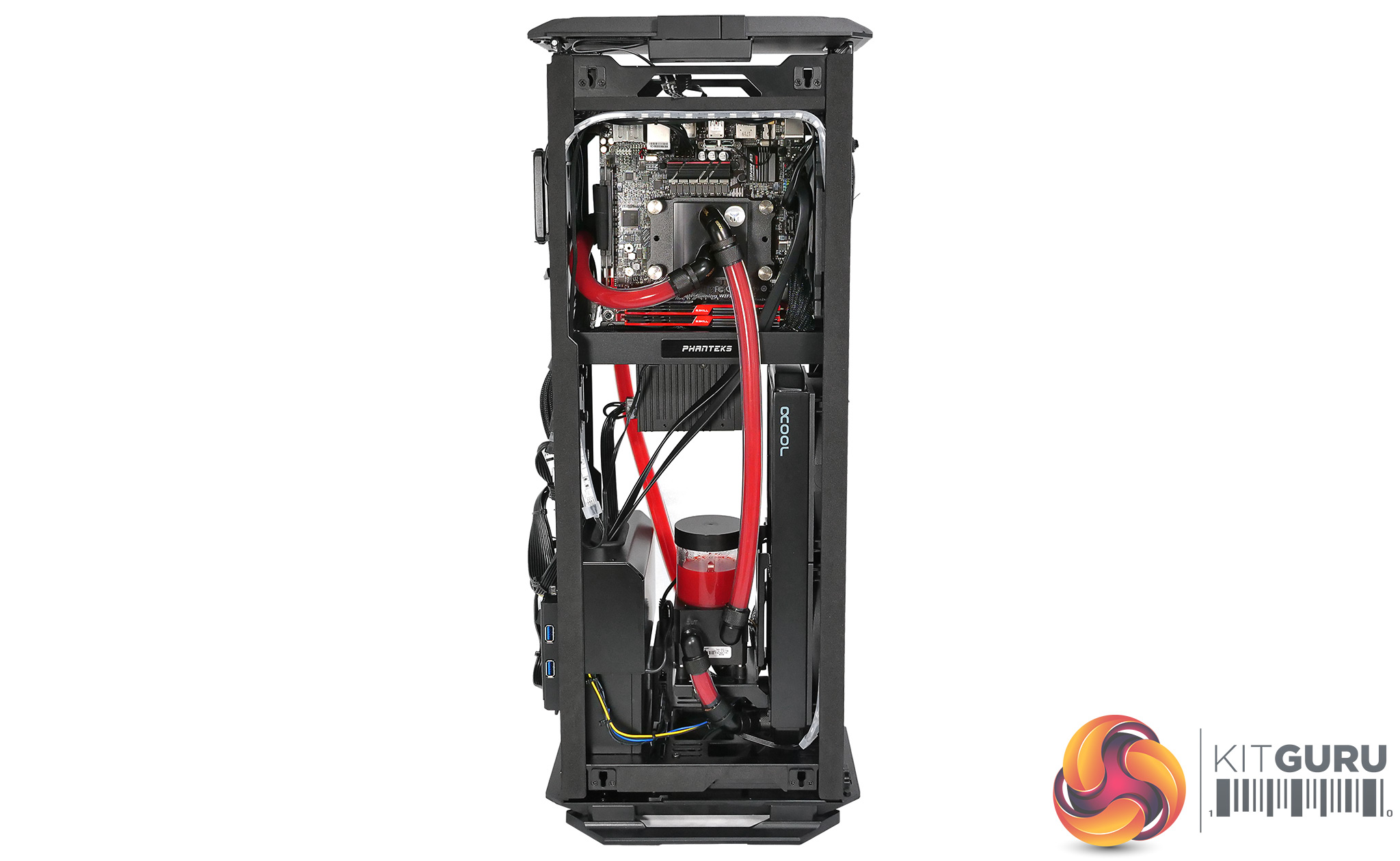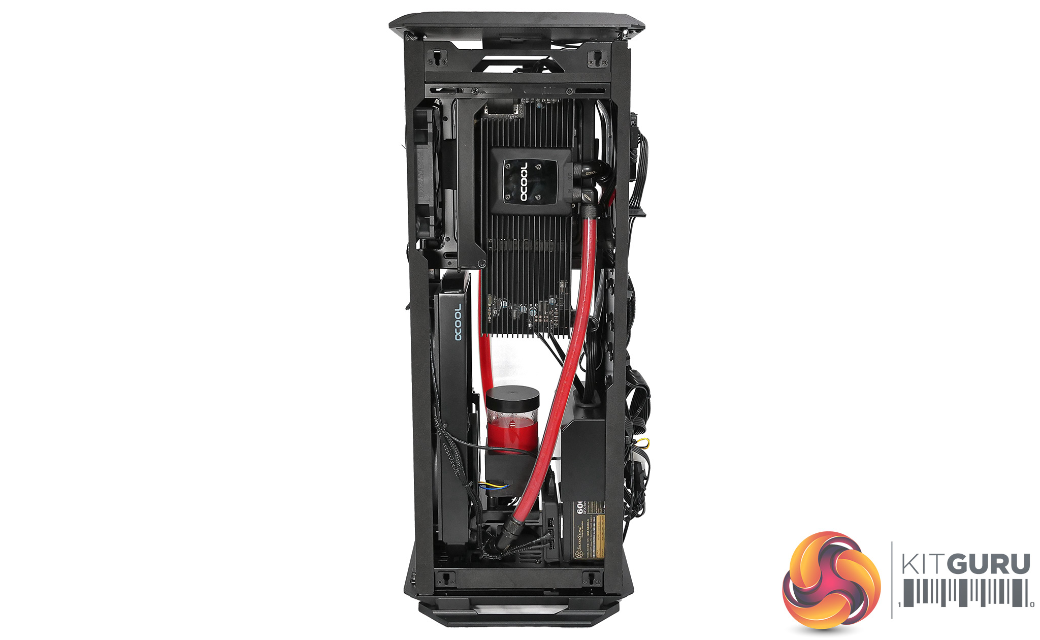 Installing the motherboard, CPU, memory and SSD should be straightforward, and then you use the remaining space for the radiator, fans, pump and reservoir. Deciding the order of the loop and then connecting the components together is a bit of a struggle due to the limited access, however the process is helped by the way the panels can be easily removed from the core chassis. Hooking up the cables is probably the toughest part of the job.