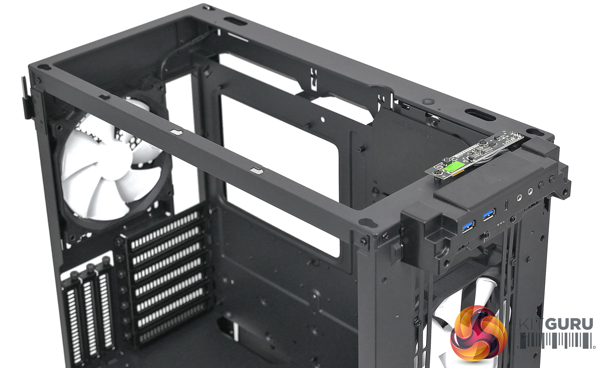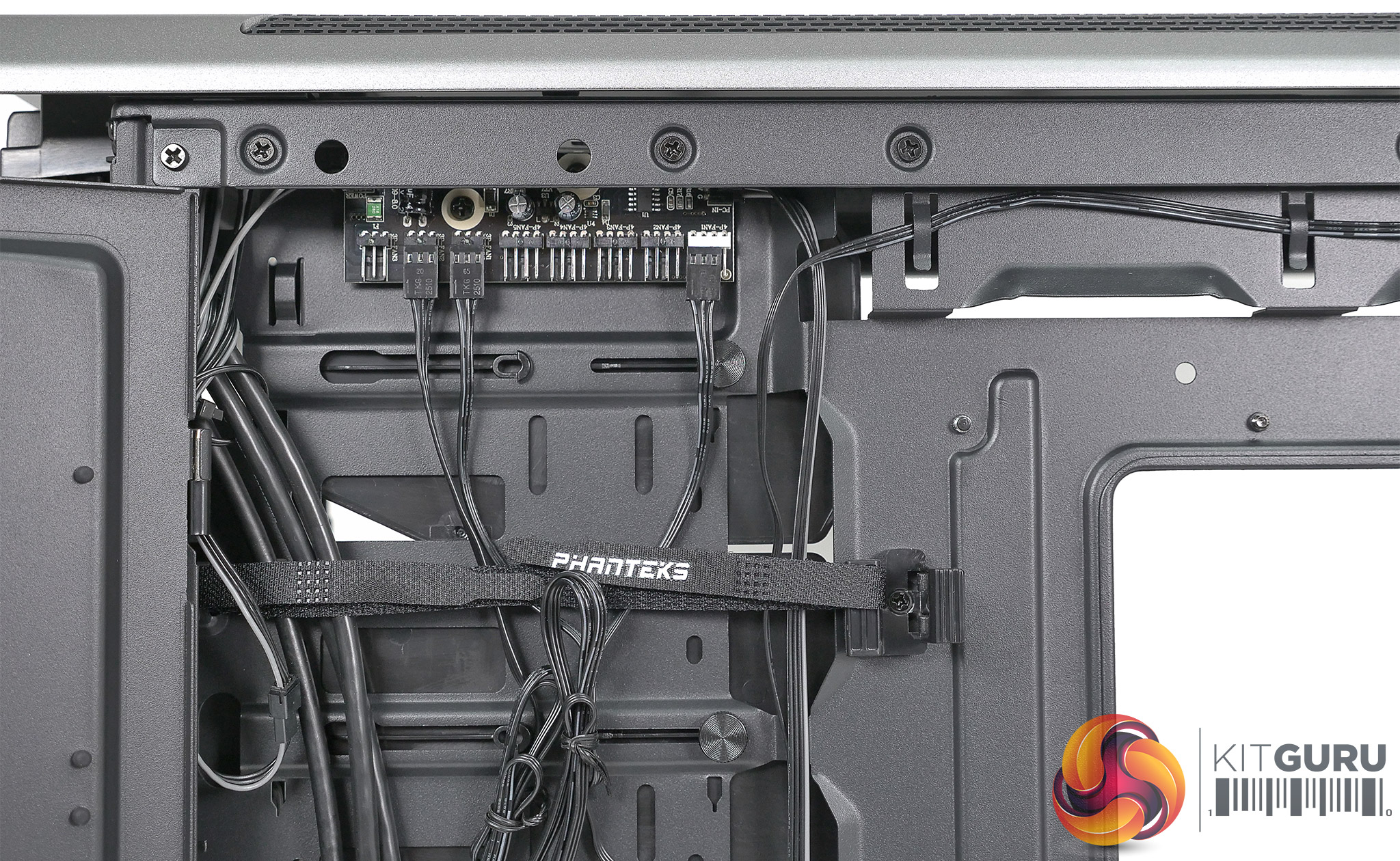 The surprising thing about Evolv X is that it is only slightly larger than Evolv ATX, standing 520mm high (Evolv ATX 495mm) and is 240mm wide (Evolv ATX 235mm) yet the number of features that have been added are quite eye-opening. The clever vertical GPU mount is superb and we love the anti-sag GPU bracket but we especially like the new Universal Fan Hub that hides up near the top of the case almost entirely out of sight. The next time we see a traditional rectangular fan hub on another case we shall surely be disappointed.