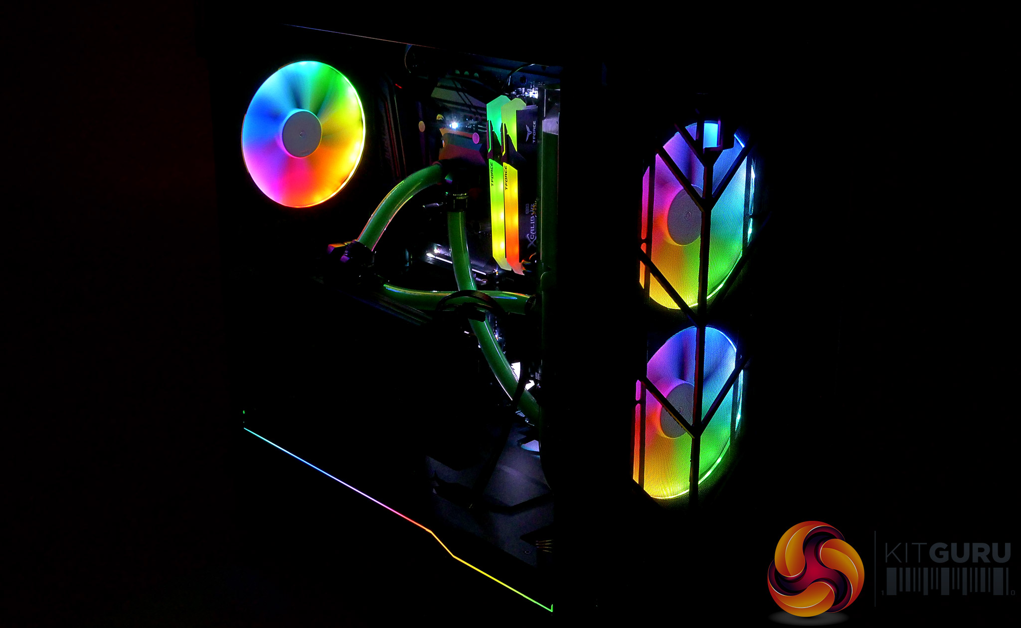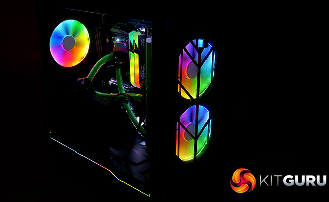 The RGB lighting that is built into the case looks great and if you connect it to an Asus or MSI motherboard using the Digital 5V connection you will enhance the lighting even further. If you want to go the whole hog we suggest you use Phanteks Halos fan frames to transform the stock Phanteks fans into fully illuminated versions that look superb, just as we did in the video.