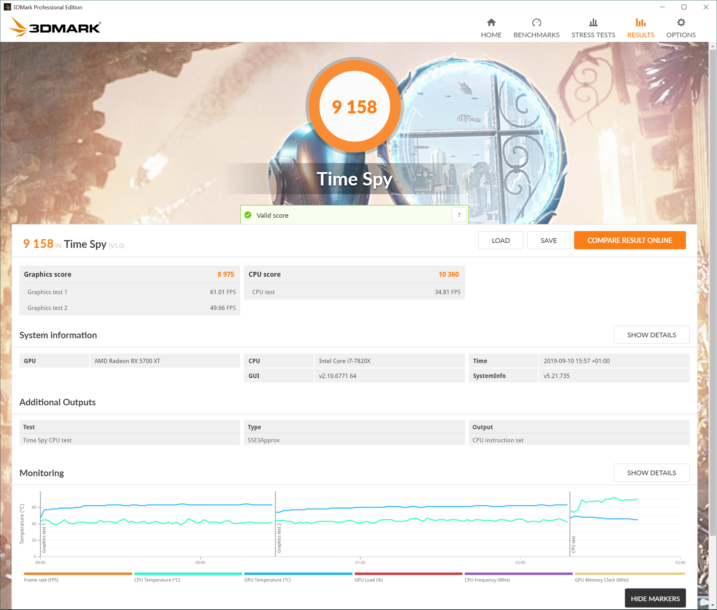 - CPU: Intel Core i7-7820X, 8C/16T, OC to 4.6GHz all cores using 1.25Vcore and 240W power limit.