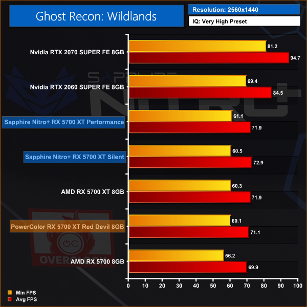 In Ghost Recon: Wildlands we can say Sapphire is the comfortable victor, just so long as 1fps or 2fps counts as comfortable.