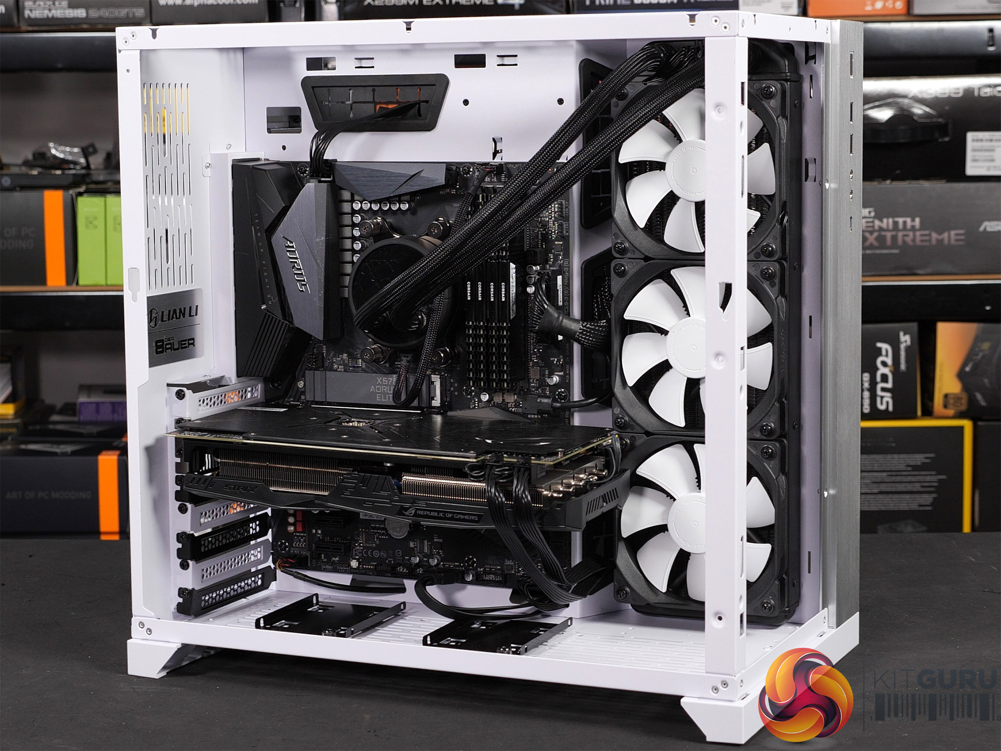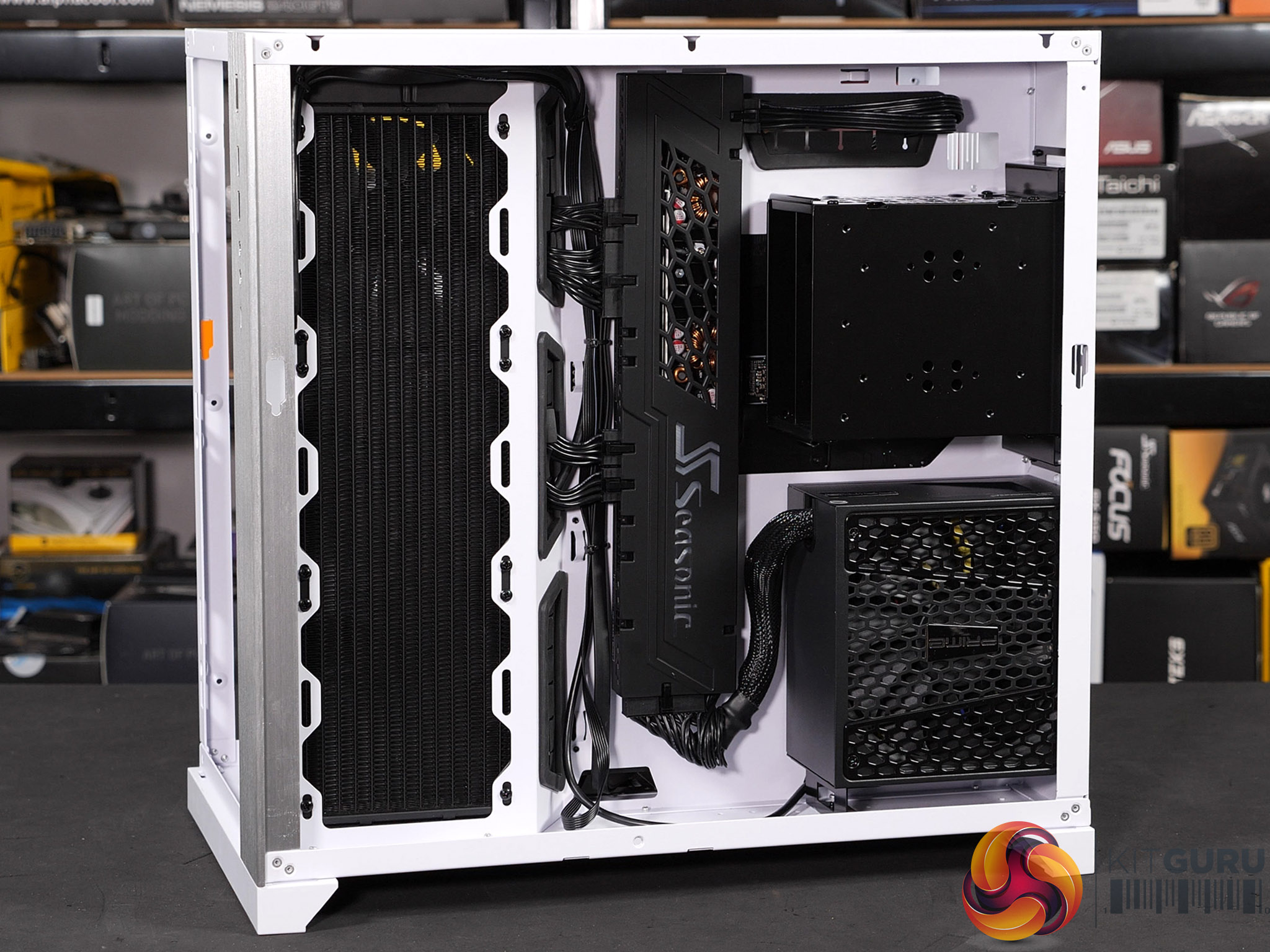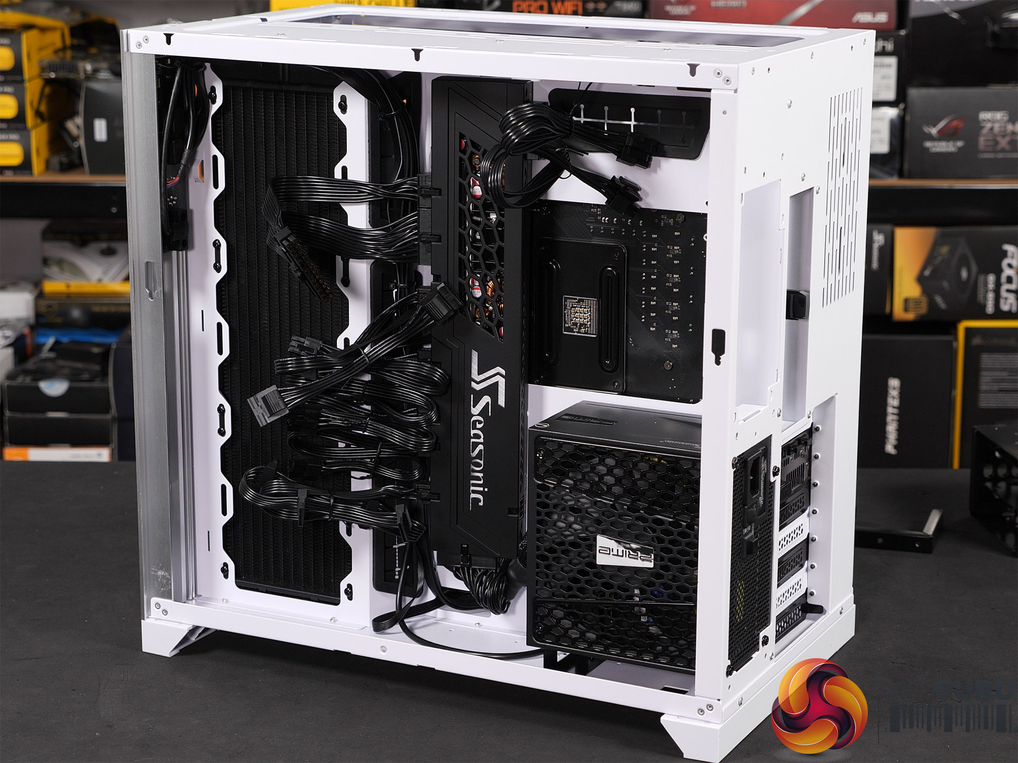 We built a test PC inside the popular Lian Li O11D case to try out a few scenarios, starting with a Seasonic Prime 850W Titanium power supply with standard cables. The Lian Li has tinted glass panels that conceal the innards of the build to a certain extent. With the glass removed you can clearly see inside the case and the aesthetics of the cables were reasonably OK with nothing too offensive on show. Around the back of the case the drive plate covers the cables, however when the plate was removed the PC still looked tidy enough.