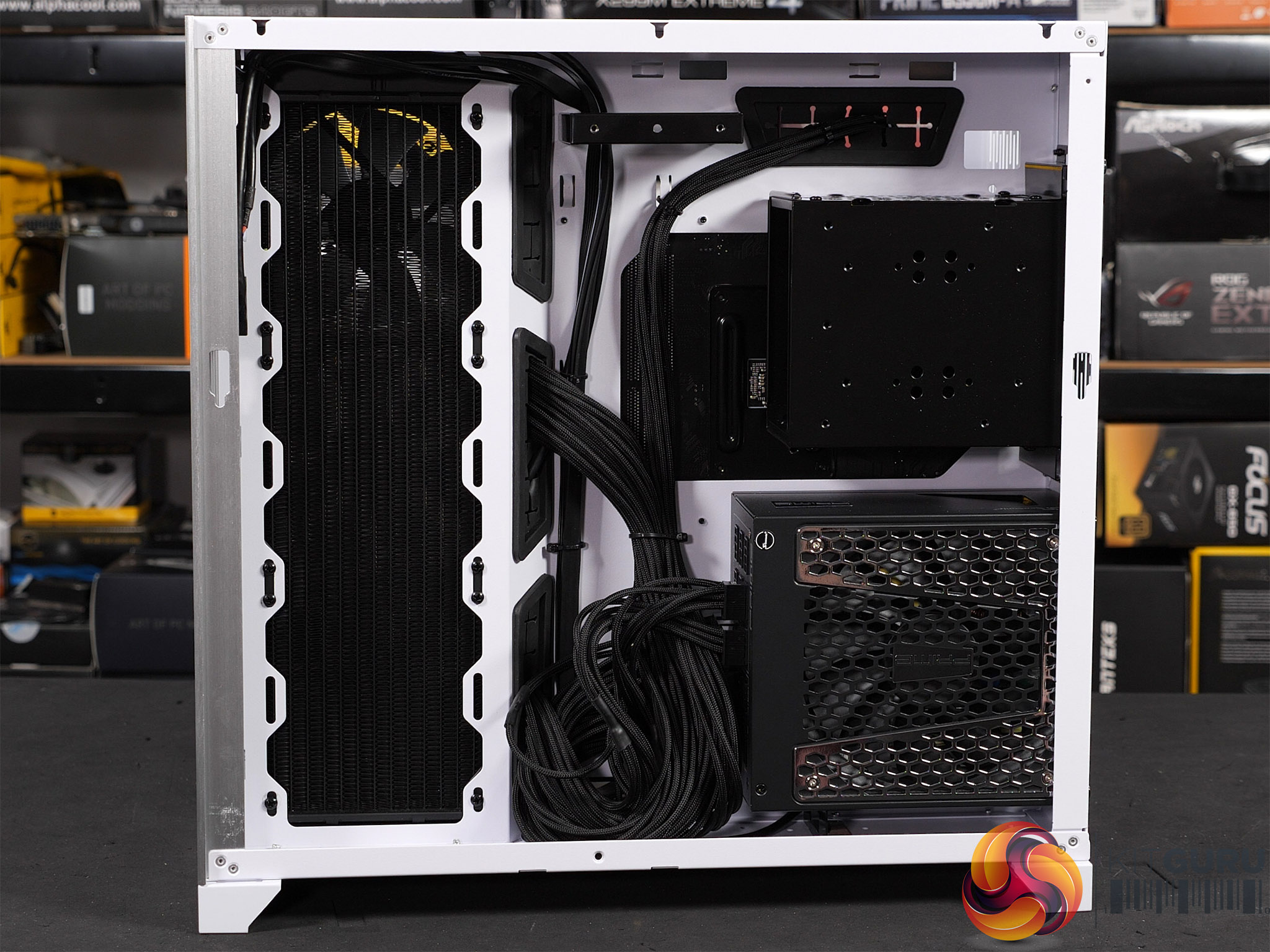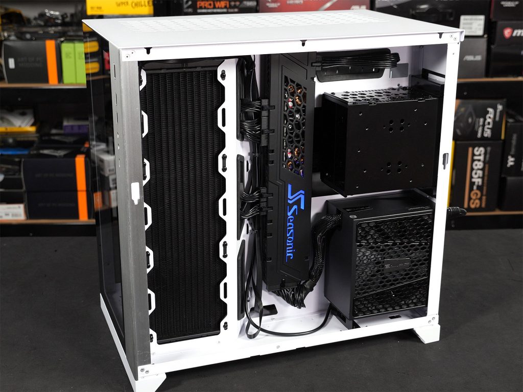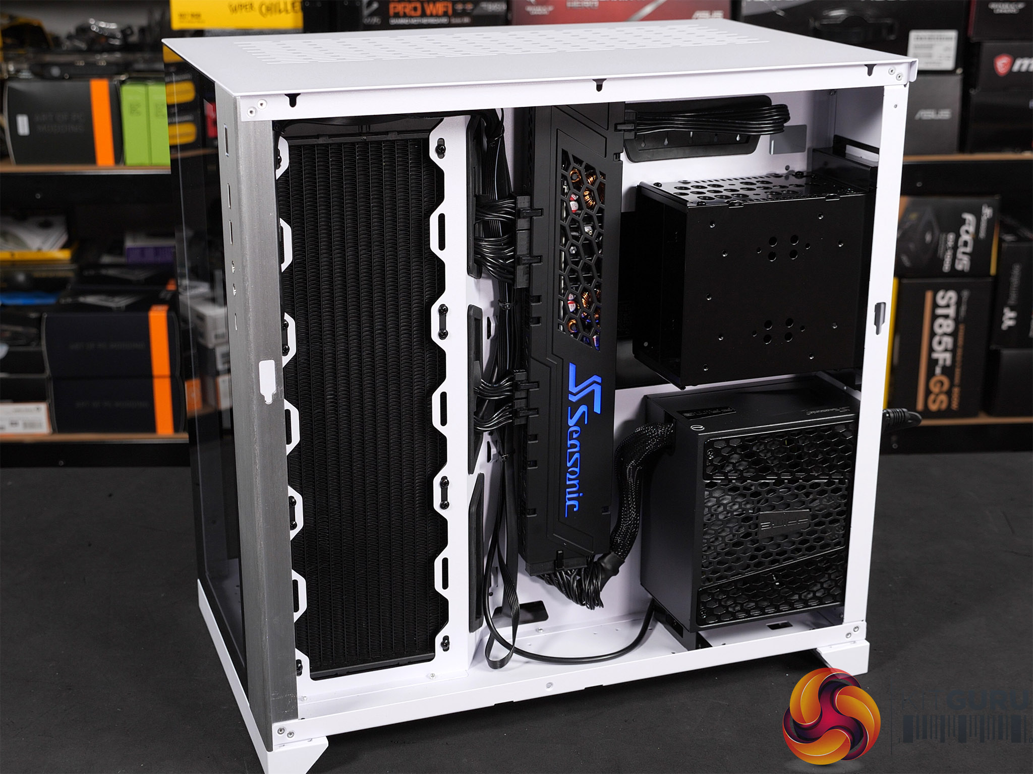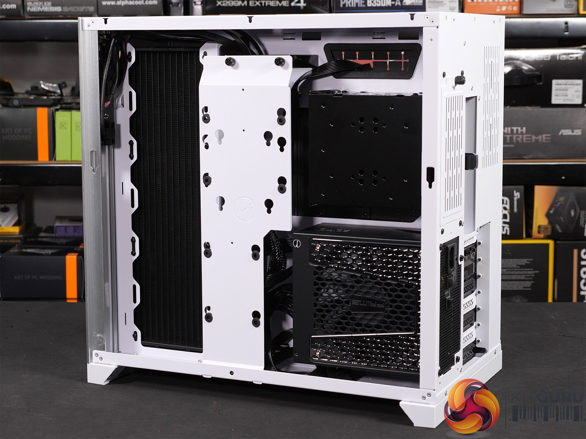 We built a test PC inside the popular Lian Li O11D case to try out a few scenarios, starting with a Seasonic Prime 850W Titanium power supply with standard cables. The Lian Li has tinted glass panels that conceal the innards of the build to a certain extent. With the glass removed you can clearly see inside the case and the aesthetics of the cables were reasonably OK with nothing too offensive on show. Around the back of the case the drive plate covers the cables, however when the plate was removed the PC still looked tidy enough.