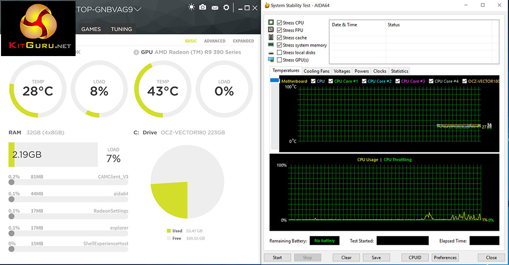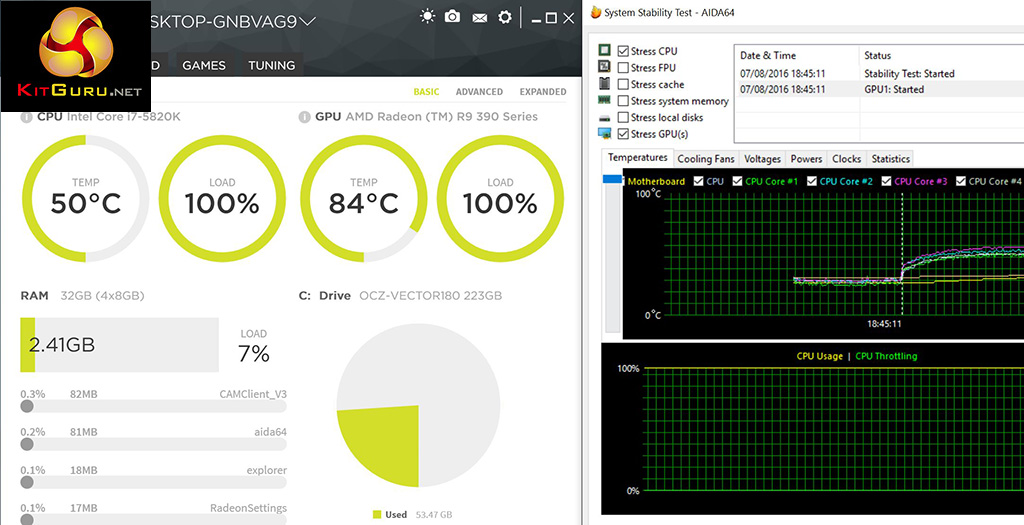 For stress testing we use AIDA64 to create the maximum heat output to stress our CPU and GPU.