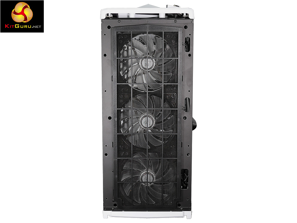 This isn’t ideal, to our way of thinking, as the front of the case is packed with the illuminated fans and it feels wrong to disturb them. The space in the roof of the case above the motherboard is somewhat tight and the compartment beneath the top cover doesn’t seem ideal for a radiator.