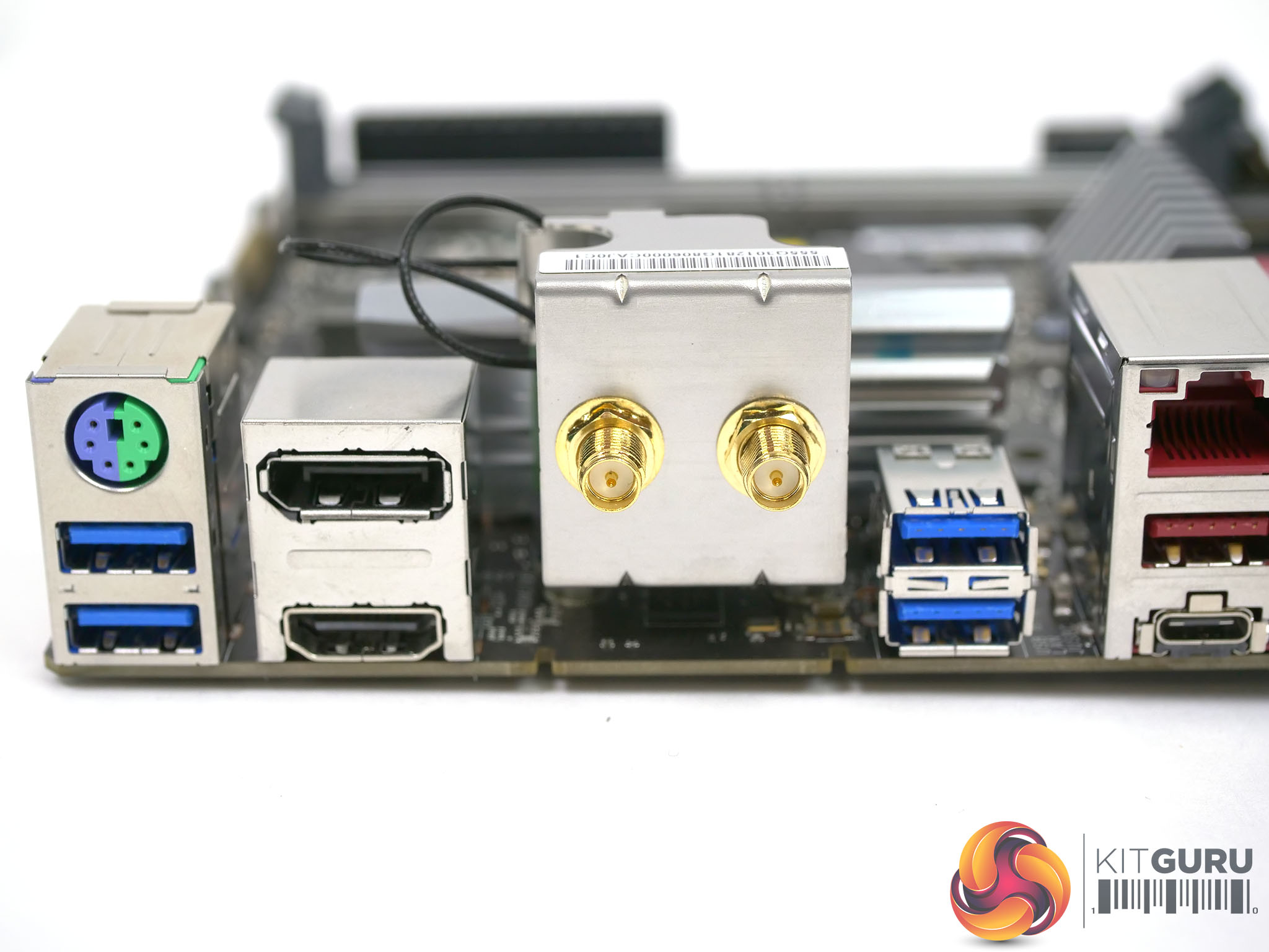 With the SuperO C7Z370-CG-IW sat on the table there is no evidence we are looking at a gaming motherboard. The I/O panel has HDMI 2.0 and DisplayPort 1.2 ports and the arrangement of the Wi-Fi antennae suggests the board should be placed horizontally, which looks rather like an HTPC set-up.