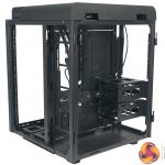 Getting inside the Level 20 HT is quick and easy, once you fathom that the front glass is retained by a release button, while the top is removed by simply pressing and clicking two catches. Off with the two side panels, unscrew the rear panel and you basically have an open frame. If you’re really keen you can strip the chassis down further by removing the motherboard tray and the mid-plate.