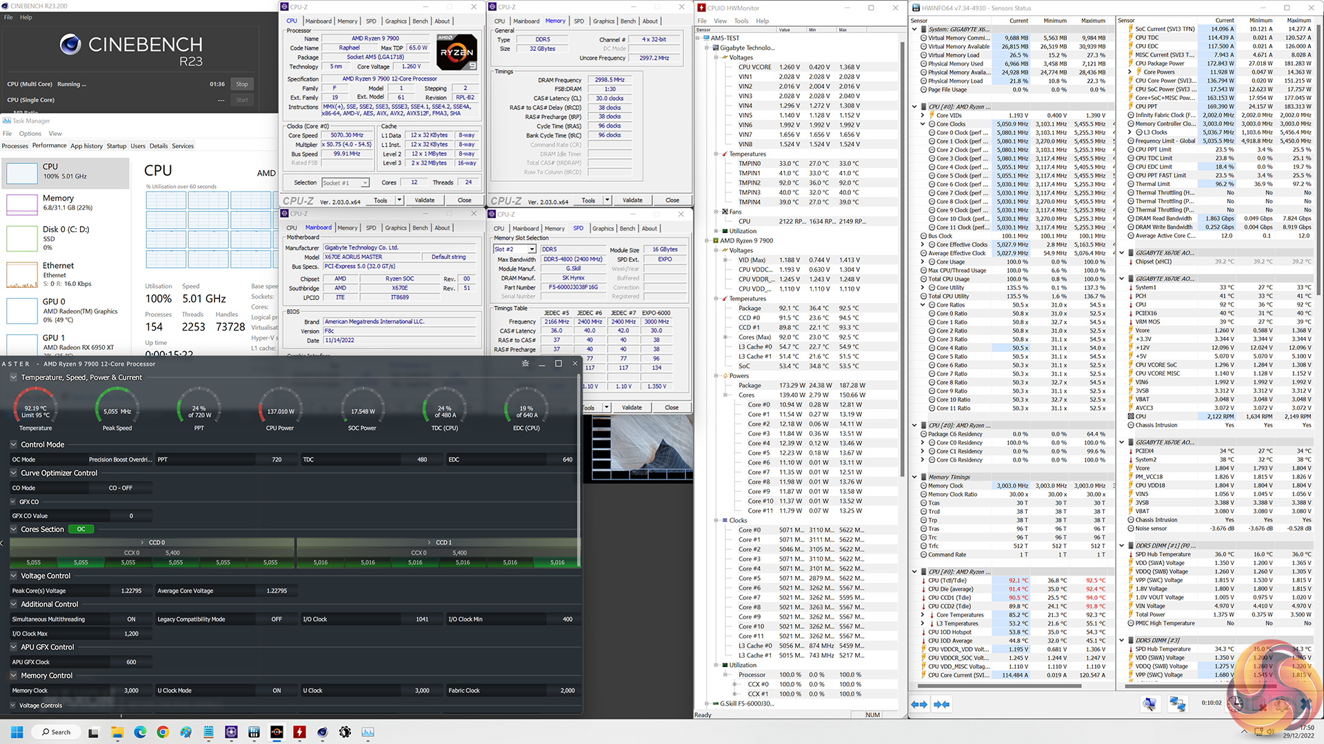The Ryzen 9 7900 ran at 5.05GHz under its PBO all-core load. This is only 50MHz slower than the stock Ryzen 9 7900X.