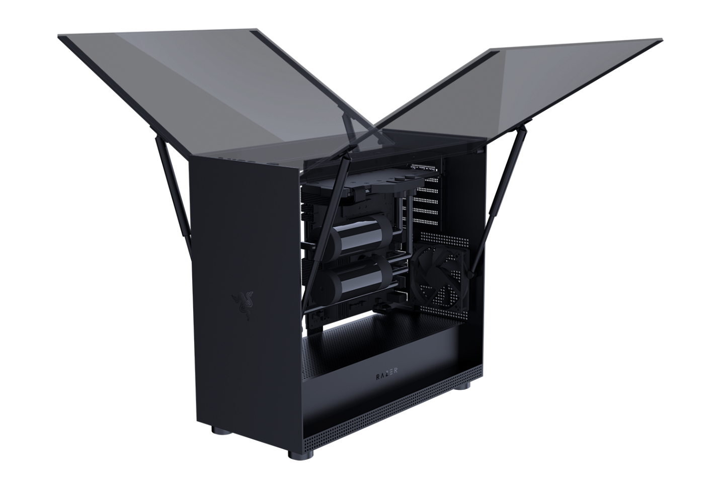 The Tomahawk Elite is the flagship version and is designed around high-end builds. You get tempered glass panels on both sides, an inverted motherboard tray to optimise GPU placement for better ventilation and support for custom liquid cooling gear. Razer has worked with EKWB specifically to make sure that the chassis is a good fit for certain liquid cooling hardware.