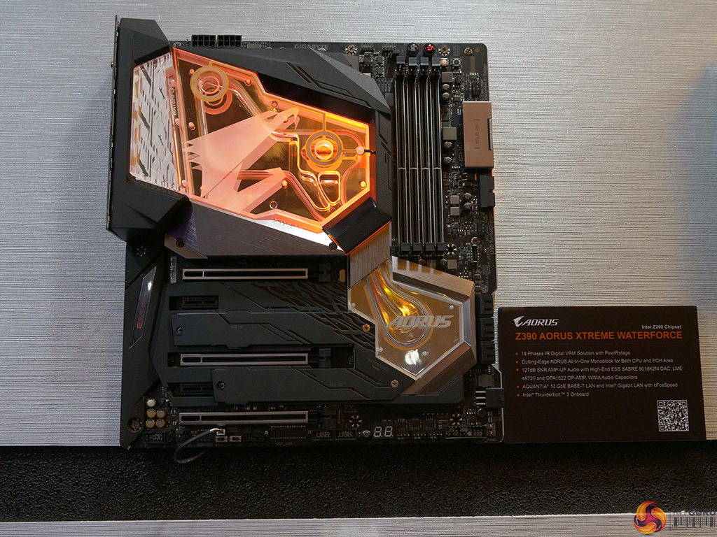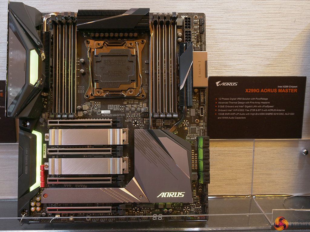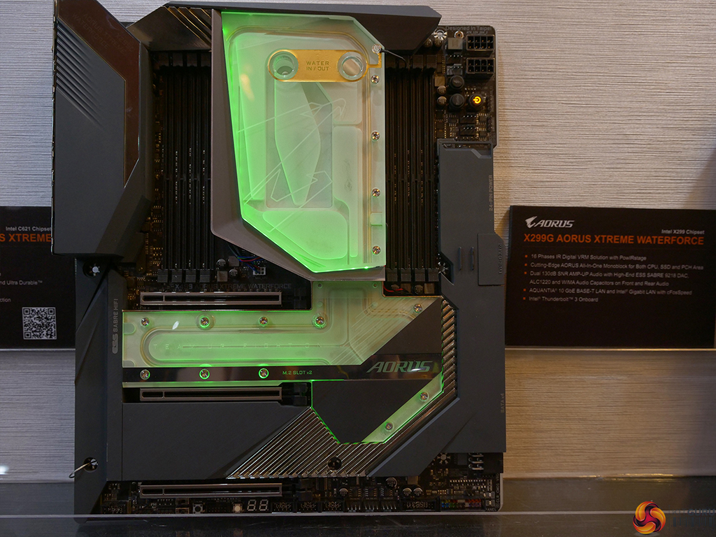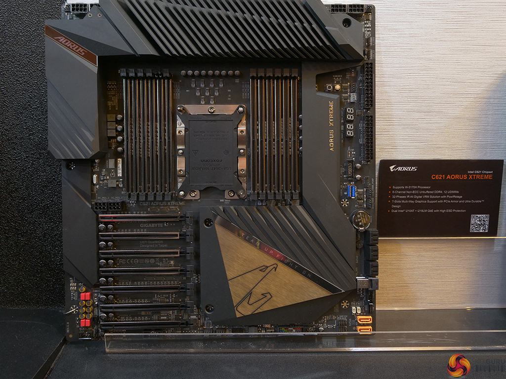 We've heard about the C621 AORUS XTREME in the past. This is going to be Gigabyte's most expensive consumer board and is comparable to the ROG Dominus, which we first saw at CES in January. This one supports the Intel W-3175X 28-core Xeon processor and is packed to the brim with high-end features, including seven PCIe slots, 12 ECC memory dimm slots, 32-phase Digital VRM power management and more. We were unsure if this board would see the light of day but so far, it is looking good.