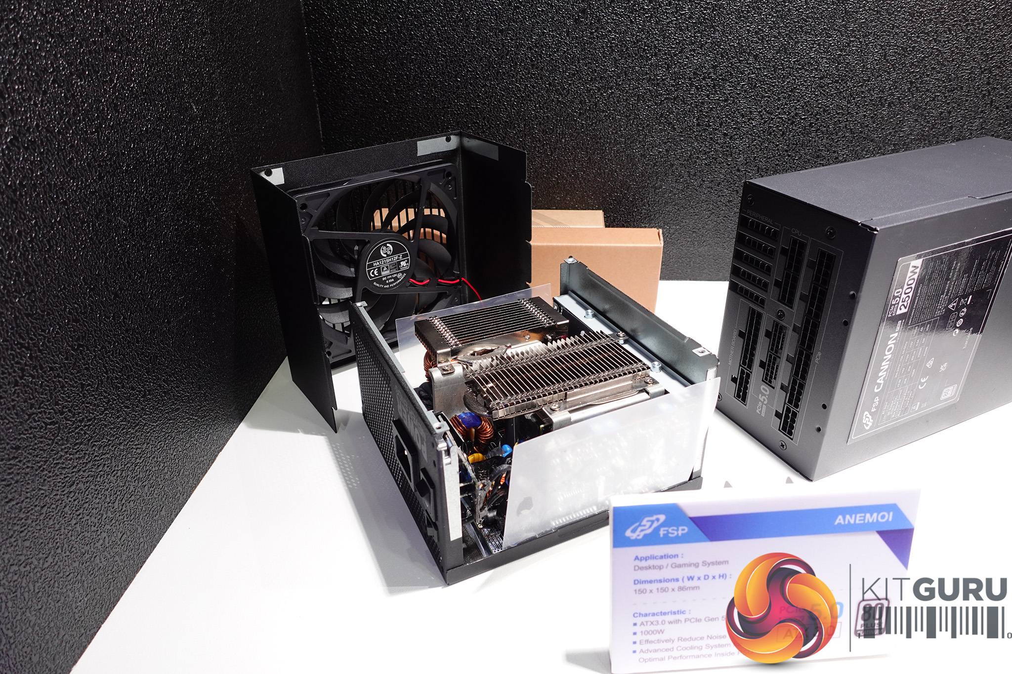 Next up is a new, in-development power supply, the Anemoi. This is an 80Plus Platinum, ATX 3.0 power supply, but it differs from the rest of the pack with its cooling solution. Rather than going for a completely passive build, FSP has added some heatpipe heatsinks to the components in the power supply and outfitted it with a very slow-speed fan. This way, it should remain inaudible inside of the case, and you'll have a longer life span for the components compared to a fully passive cooling solution. FSP has a range of other ATX 3.0 power supplies too, from the Dagger series to the Hydro series.