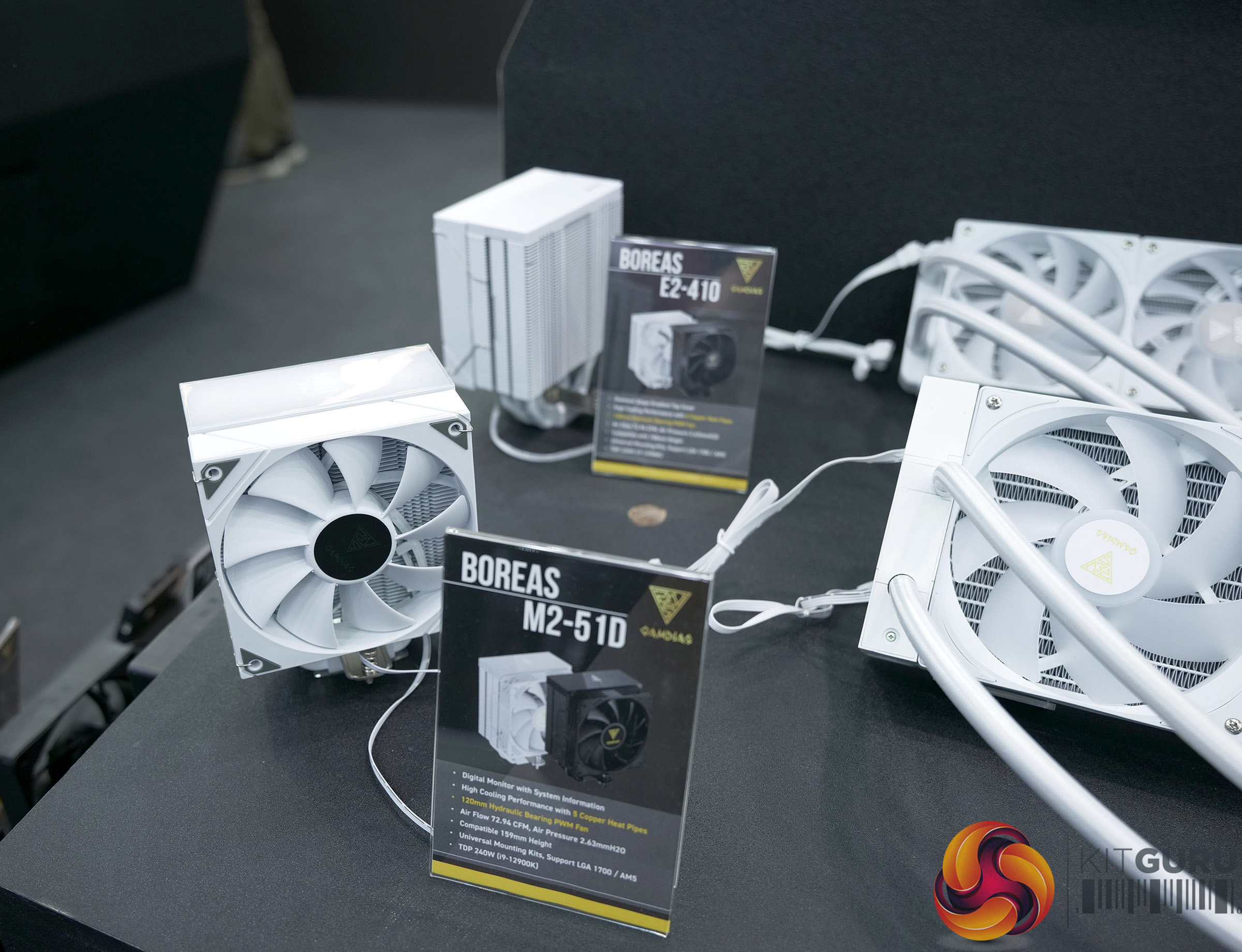 On the cooling front we have several new products from Gamdias, including the Chione M4 Elite AIO liquid cooler, which stands out with its 3.4-inch LCD display. For those who prefer air cooling, the Boreas P2-82L offers a dual-tower heatsink and an integrated LCD display so you can monitor system temperatures or display custom animations. Finally, we also have the new Notus M1-1205 Premium Fan with a maximum speed of 1,700 RPM each. Concealed cable routing is also available, so you can hide away your fan cables.