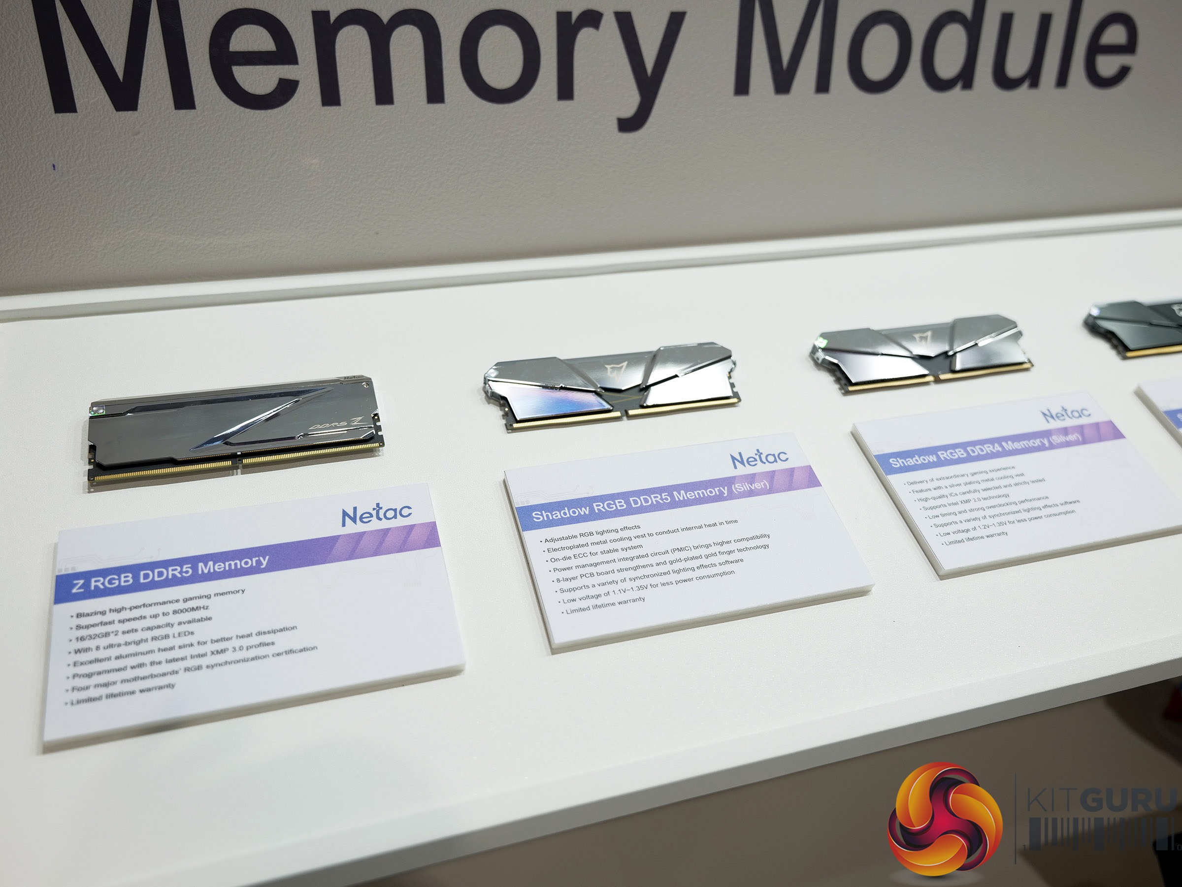 Netac also has a range of DDR5 memory on the market, including Netac Z RGB and Netac Shadow RGB. The former is the flagship, offering speeds of up to 8000MT/s, while the latter is aimed towards the gaming PC market, offering more sensible speeds of up to 6200MT/s and therefor, lower pricing.