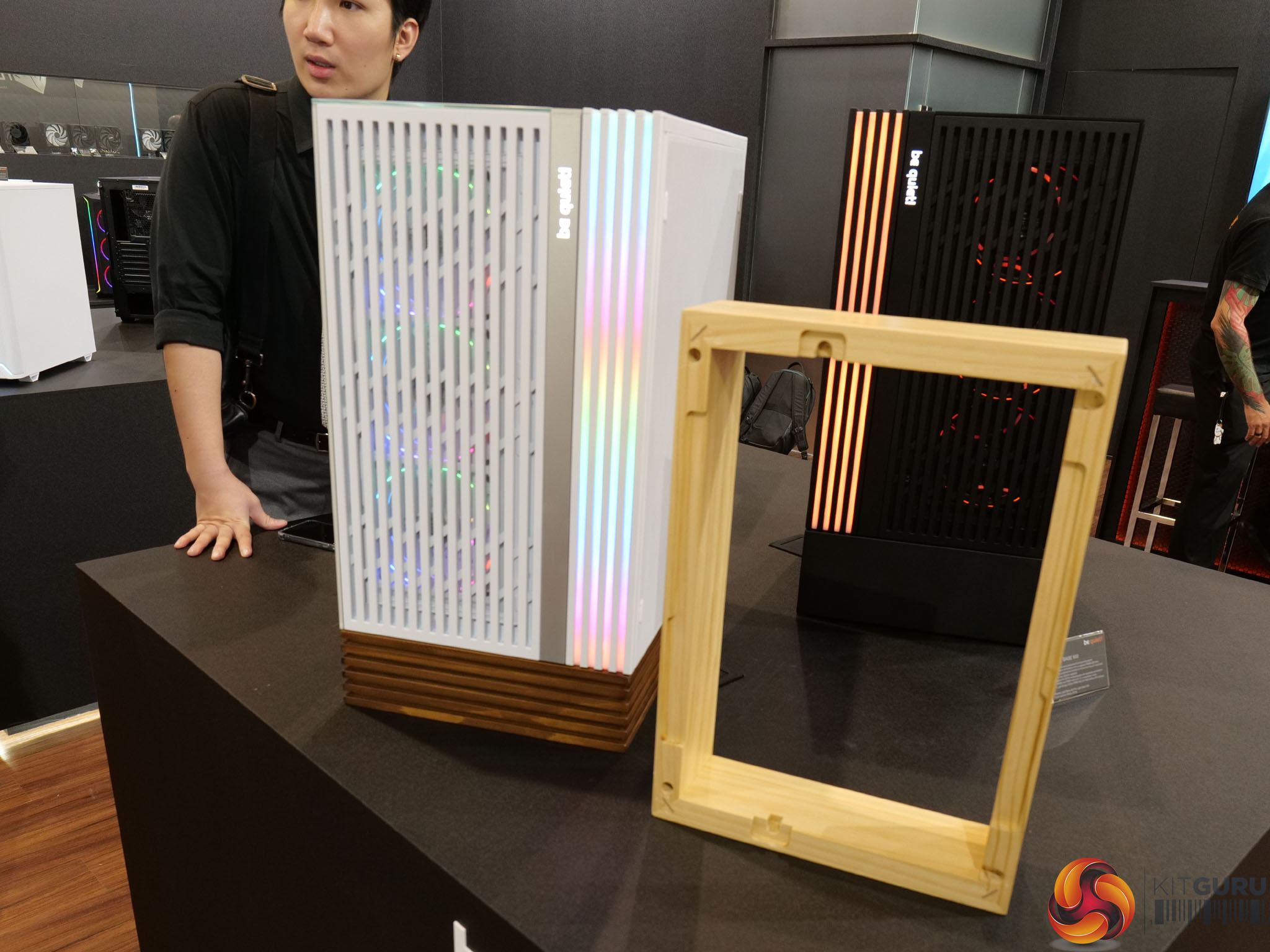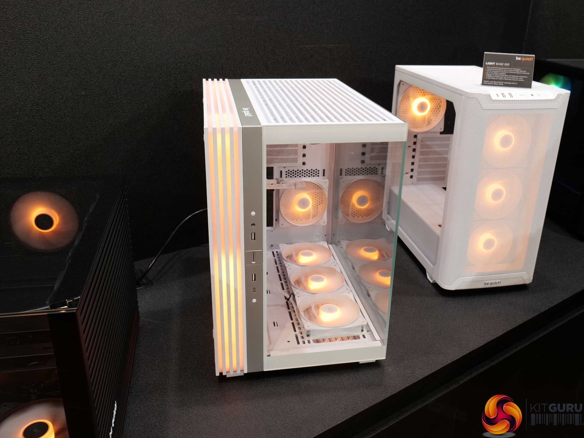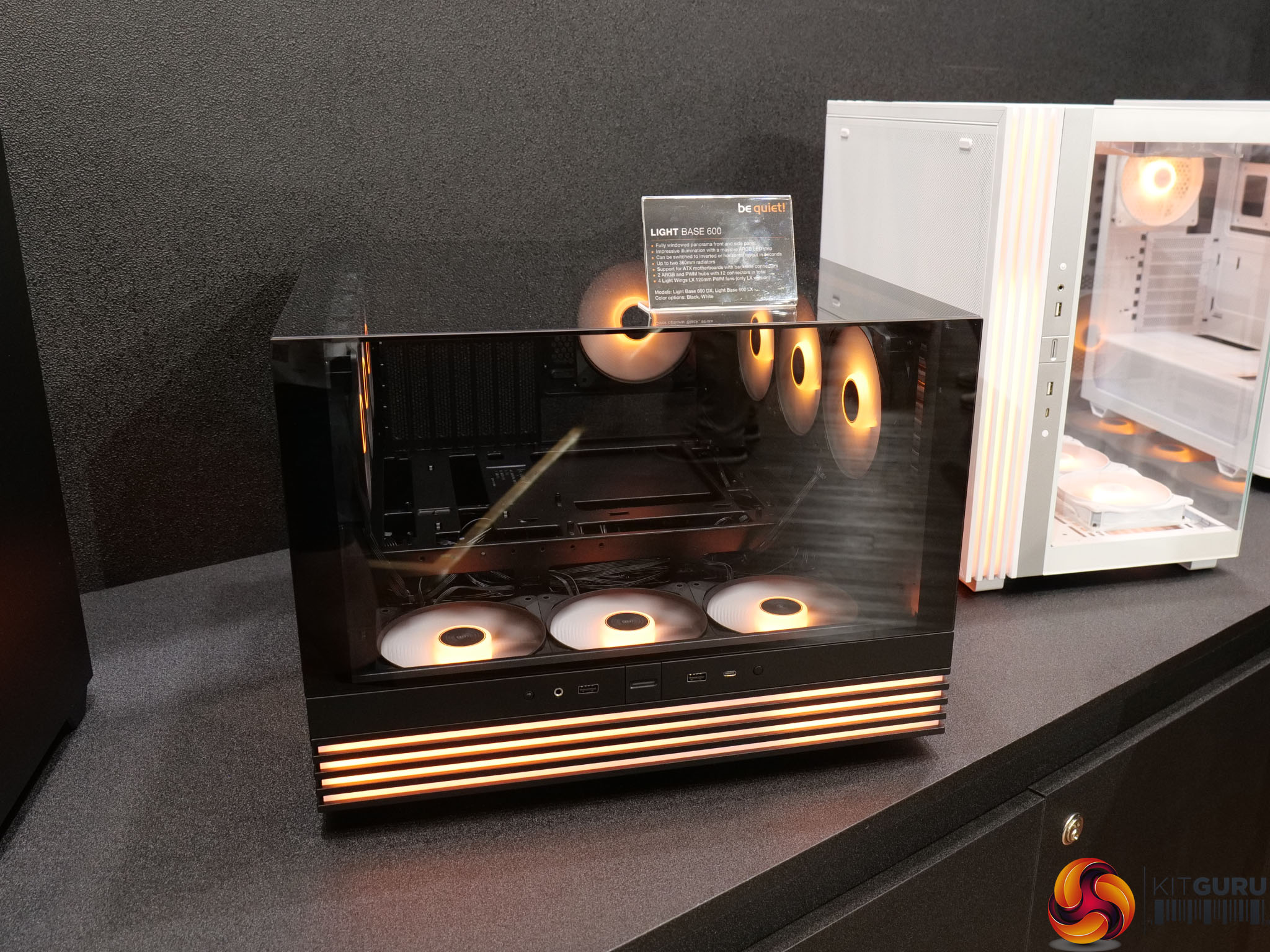 On to cases. Here, be quiet! has a new prototype on display, the Light Base Stand, a new tall configuration for the Light Base chassis that allows for all connectors to face downwards. The idea is that the case will take up less space, so it can easily fit on top of your desk and enable new airflow configurations, not too dissimilar to a Corsair One or Xbox Series X console.