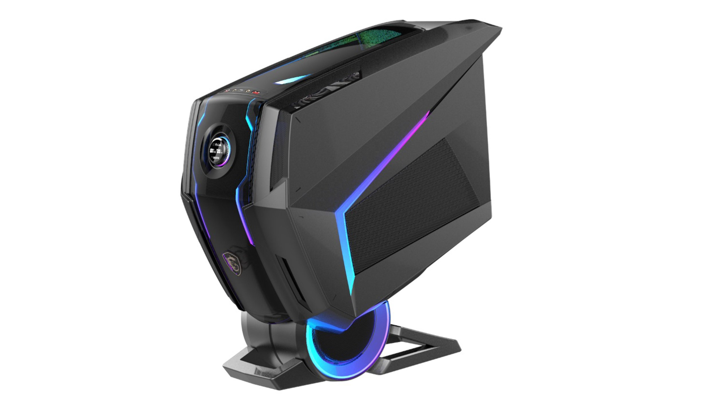 On the gaming desktop side of things, MSI will be showcasing the Aegis Ti5, which already won a CES Innovation Award in late 2019. We'll be able to dive into some of the finer details around its design after we see it first hand but for now, just know that this crazy looking desktop packs up to an Intel Core i9 processor, 128GB of RAM and an RTX 2080Ti.