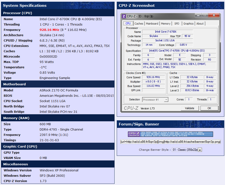 The record-setting test-bed was based on an engineering sample of Intel Core i7-6700K processor as well as Asrock Z170 OC Formula mainboard. The processor was downclocked to 928MHz, three out of four cores as well as Intel’s Hyper-Threading technology were disabled. The CPU and the module were cooled-down using liquid nitrogen.