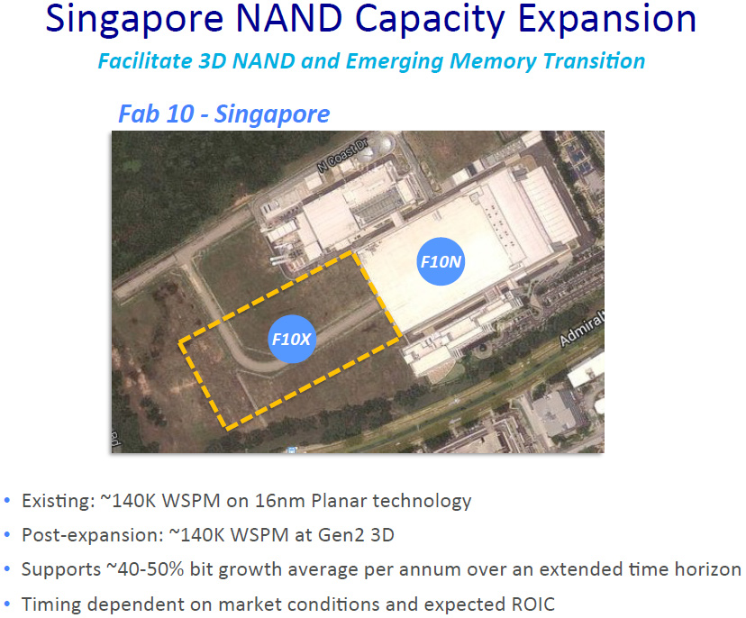 Micron Technology on Monday began the expansion of its Singapore NAND flash memory fabrication facility. The company started to build a new fab that will cost $4 billion and will start production in fiscal 2017. The new fab is expected to produce innovative 3D NAND flash (co-developed with Intel) as well as other types of future memory.