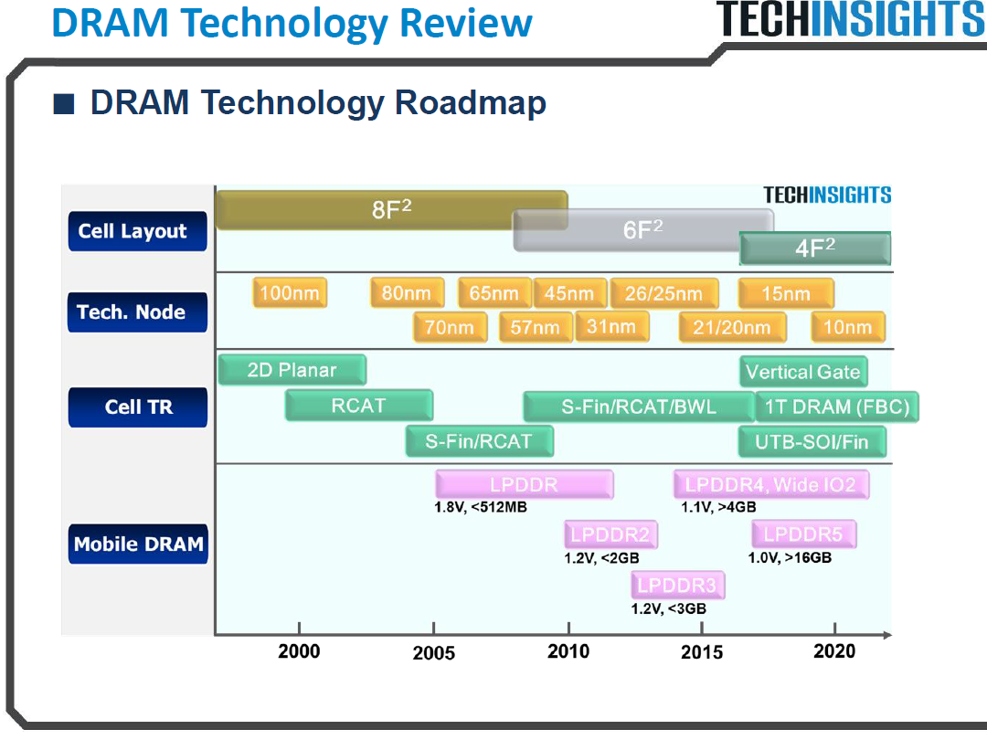 Manufacturers of DRAM believe that higher bit density requires transition from 6F² to 4F² cell layout structure with transistors featuring vertical gates. Analysts from TechInsights think that replacing recess channel field effect transistor with high aspect ratio vertical transistor is challenging. In addition, TechInsights predicts that the switch to 4F² cell layout structure will occur along with transition to 10nm-class manufacturing processes.